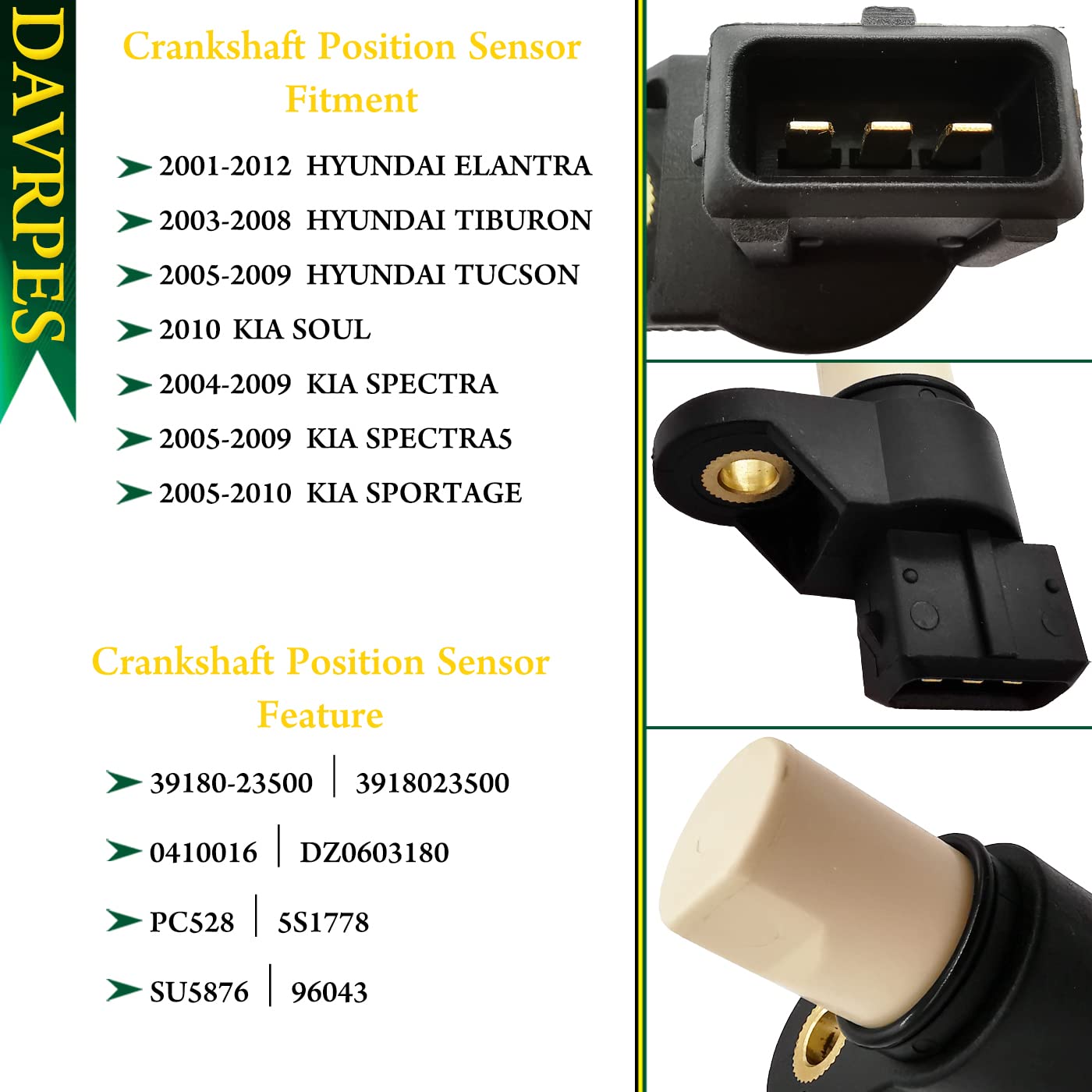 3 avaliações para Sensor de Posição do Virabrequim 39180-23500 para Hyundai Elantra, Tiburon, Tucson, Kia Spectra 5, Sportage e Soul – Substitui 96043, 0410016, DZ0603180, PC528, 5S1778, SU5876