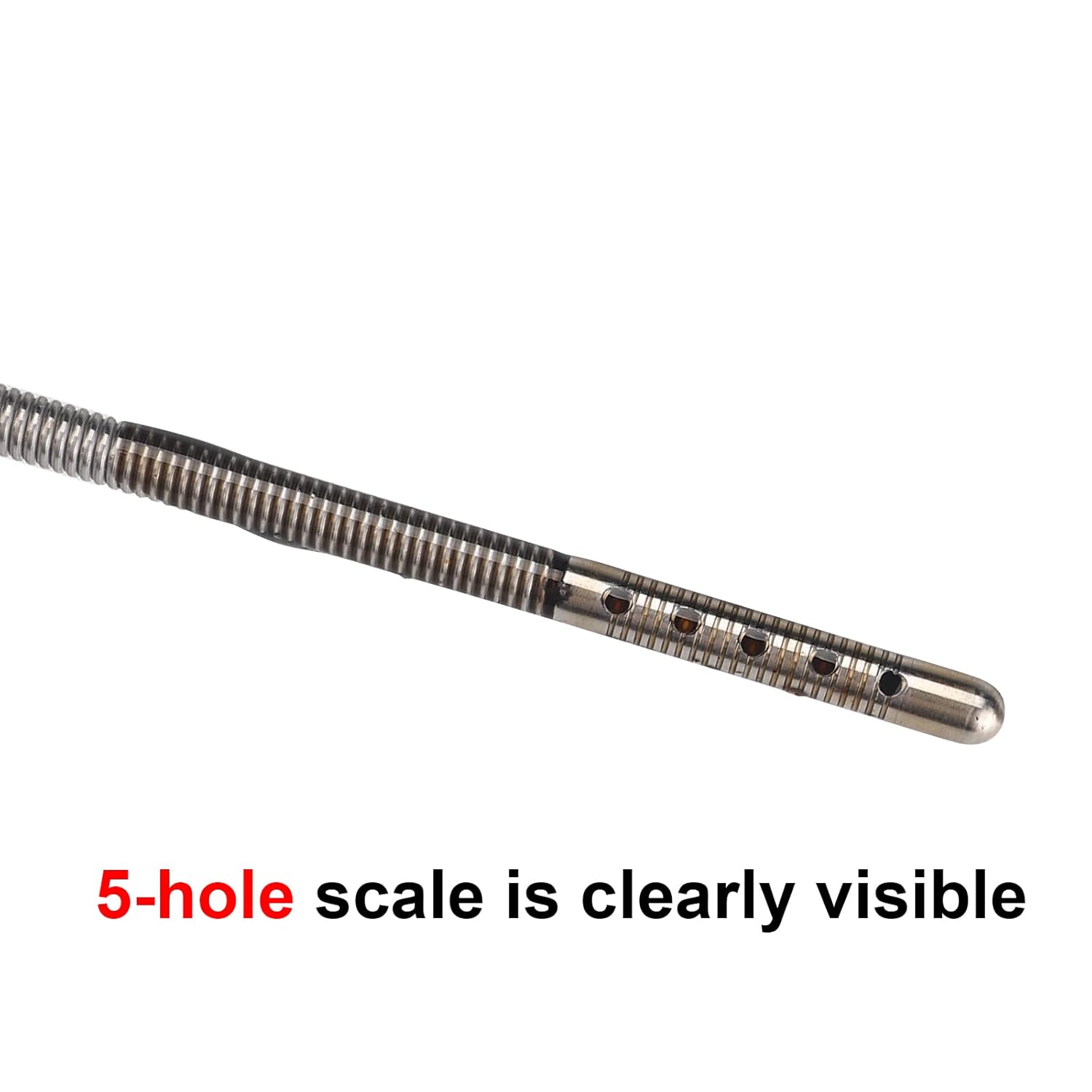 Uma das grandes inovações deste produto é a ranhura na extremidade da escala, que mantém o óleo em seu lugar, conectada por soldagem a laser com mola, evitando que o medidor caia no cárter. Isso elimina os problemas comuns enfrentados com outros medidores de óleo, tornando a experiência de uso muito mais conveniente.