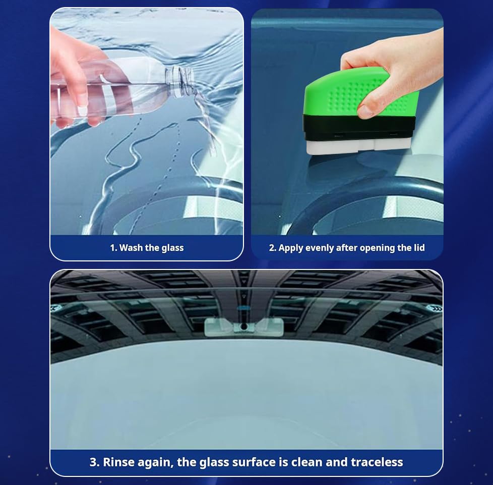 - 🚗 Fácil de Usar: Aplicar nossa Escova de Limpeza de Filme de Óleo Automotivo é muito simples, graças ao aplicador embutido. Em apenas alguns minutos, você cobre todo o para-brisa, tornando-o mais resistente à água e proporcionando uma visão mais clara e desobstruída em dias de chuva.