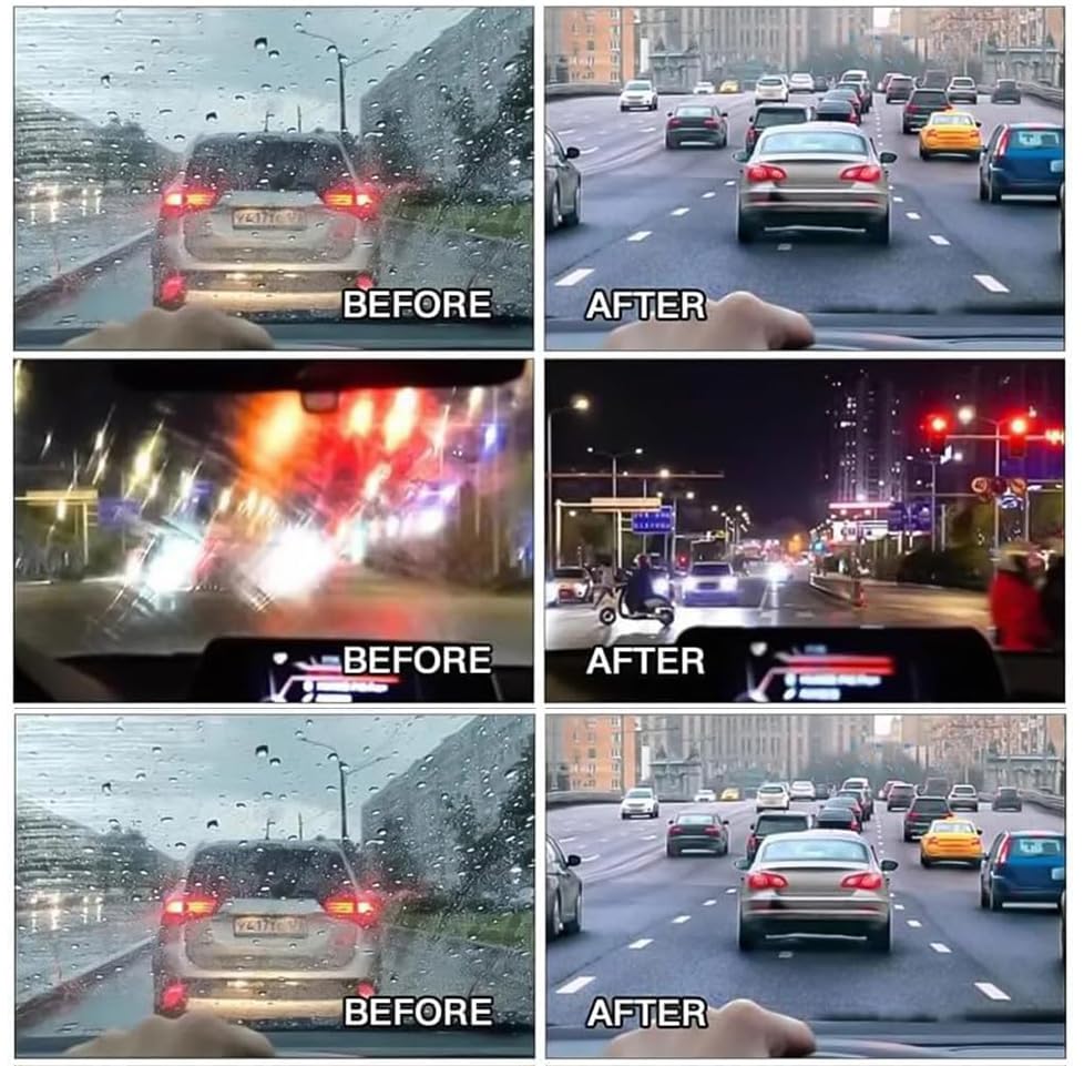 - 🚗 Alta Eficiência: Remove efetivamente sujeira, manchas e filmes de óleo persistentes, oferecendo resultados sem riscos e prevenindo ofuscamento. O resultado é um para-brisa limpo e cristalino, sem resíduos.
