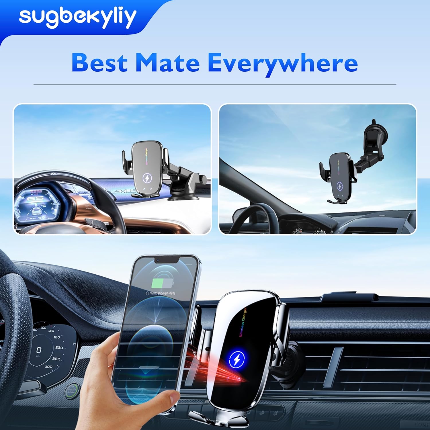 This is a really powerful charger for wireless charging on the go. I installed it in my wife’s mini-van by attaching to the front windshield. Note that the suction only adheres if the window is clean of oil and debris so use alcohol and a cloth to clean a small area to apply the suction. It also comes with a vent holder or you can attach it to the dash. Please ensure that you have enough wire to connect the charging cable to the lighter outlet. One downside was the instructions were poorly written and it took awhile to figure out how to put together and install all the pieces to the charger.
