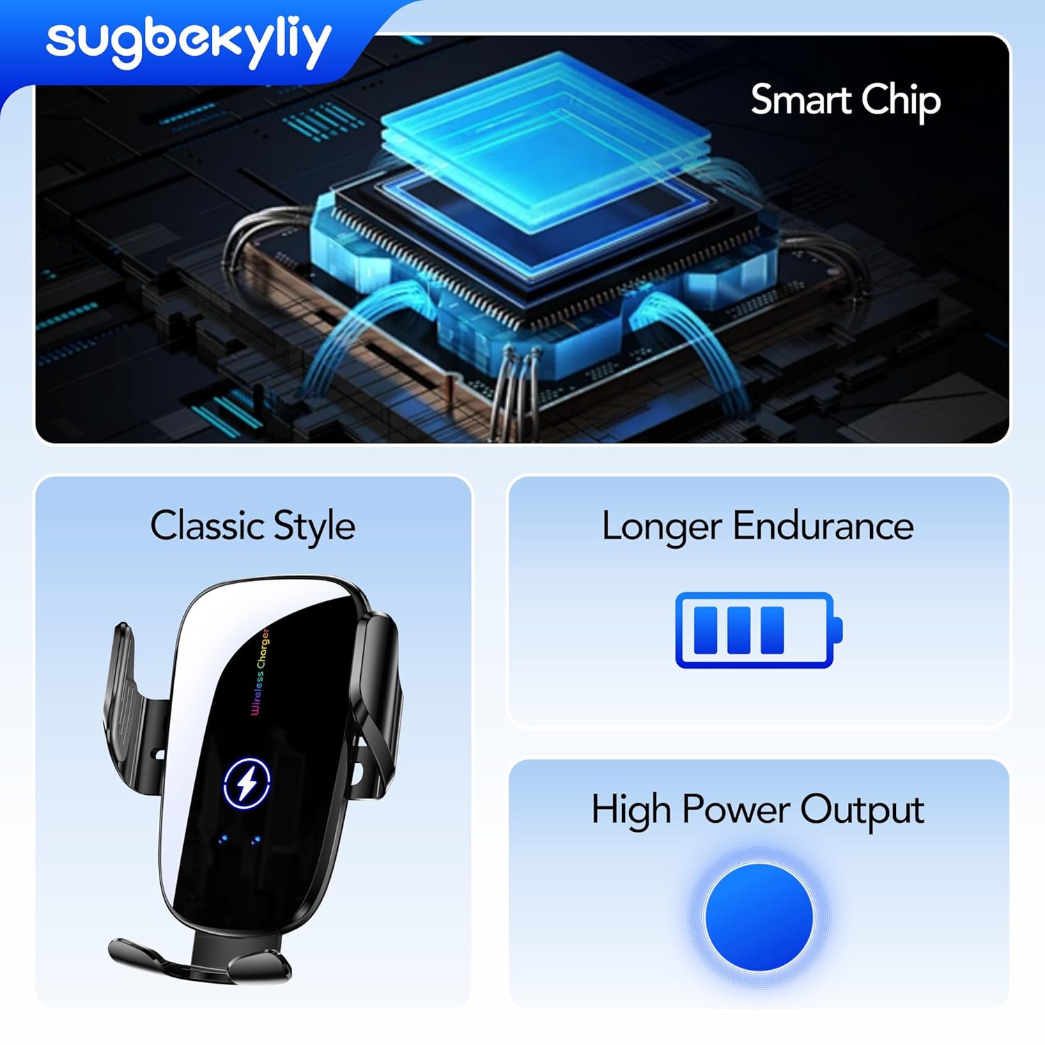 O suporte para carro utiliza tecnologia de detecção infravermelha, permitindo operação com uma única mão. Ao colocar o telefone no suporte, a garra se fecha automaticamente, iniciando o carregamento instantaneamente. Para retirar o telefone, basta tocar na área sensível do carregador. Com um supercapacitor embutido, não há necessidade de se preocupar se você esquecer o telefone no suporte quando o carro estiver desligado.
