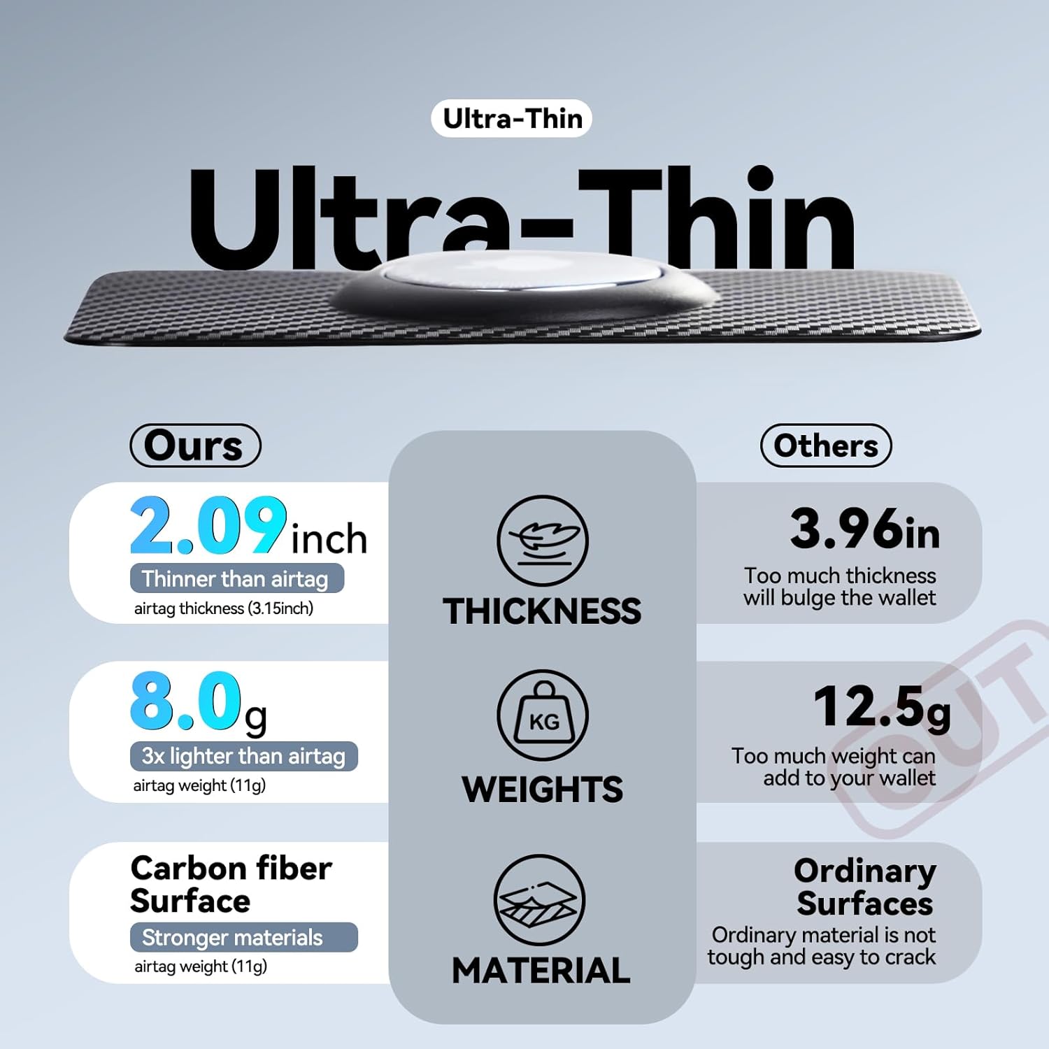 Fabricado em fibra de carbono, este suporte é conhecido por sua resistência a altas temperaturas, corrosão e baixa expansão térmica. Este material é amplamente utilizado em setores como aeroespacial e automotivo, representando a perfeita combinação entre tecnologia moderna e moda. O suporte para Airtag também protege sua carteira de marcas indesejadas e evita que seus cartões de crédito se deformem ao redor do Airtag, garantindo que tanto sua carteira quanto seus cartões permaneçam em condições impecáveis.