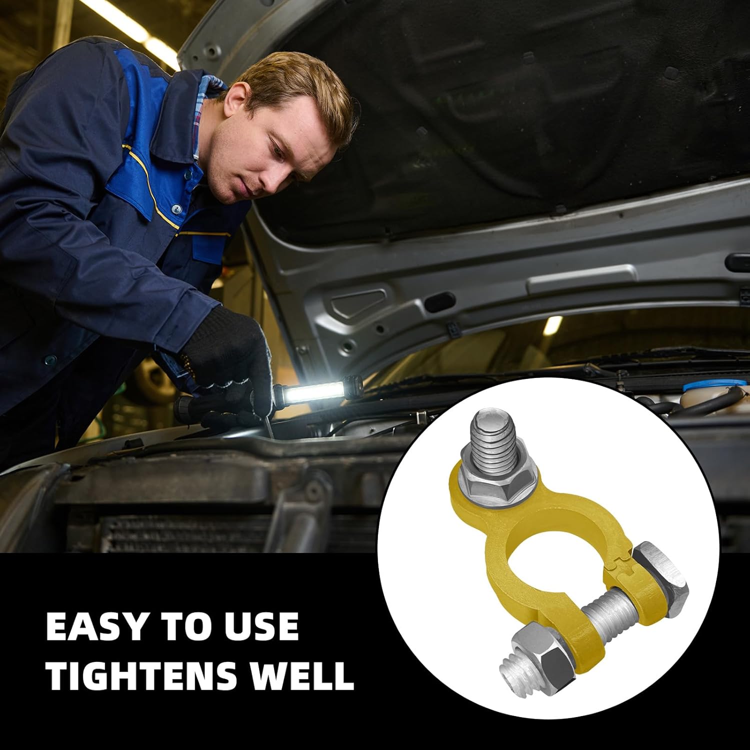 Esses terminais pesados são adequados para baterias de 12V/24V, tanto de terminais superiores quanto laterais, sendo ideais para motocicletas, automóveis, barcos e muito mais. Sua versatilidade os torna uma escolha excelente para qualquer entusiasta de veículos.