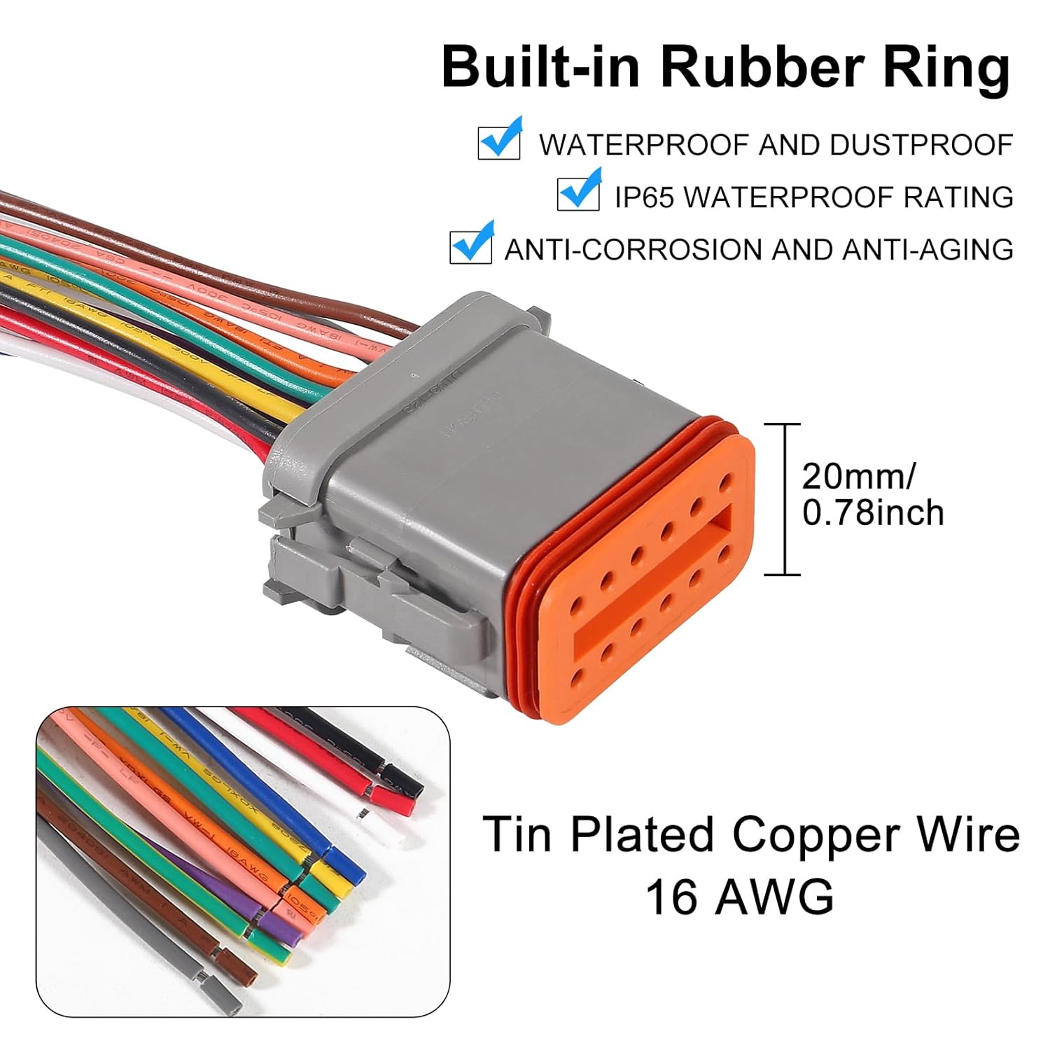 7 avaliações para Conectores DT Impermeáveis 12 Pinos – 4 Pares Masculino e Feminino com Cabo 18AWG 150MM para Carros, Caminhões, Barcos e Luzes LED