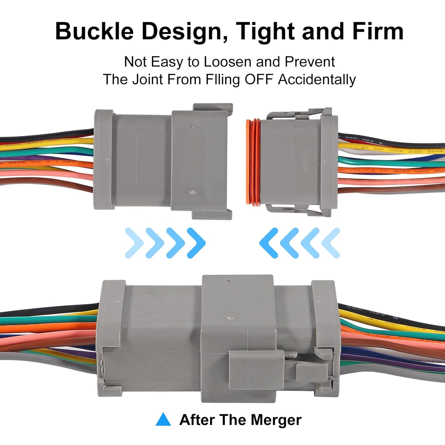 Equipados com um anel de vedação de borracha de alta qualidade, os conectores DT são eficazes contra a água e a corrosão, proporcionando uma proteção robusta para sistemas elétricos em ambientes externos. O design de encaixe facilita a instalação, tornando-a rápida e segura, com uma conexão firme que não se solta facilmente.