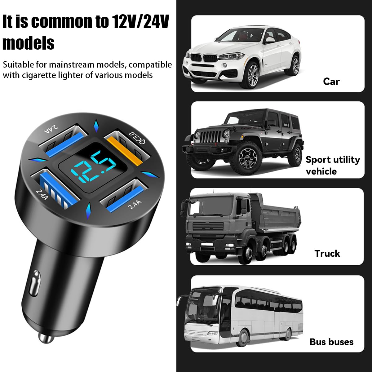 80 avaliações para Carregador Veicular USB 4 Portas 66W – Super Carregamento Rápido QC 3.0, PD 20W e USB 2.4A com Adaptador, Quick Charge e Voltmímetro LED, Plugue para Acendedor de Cigarros (QC3.0, 2PCS)