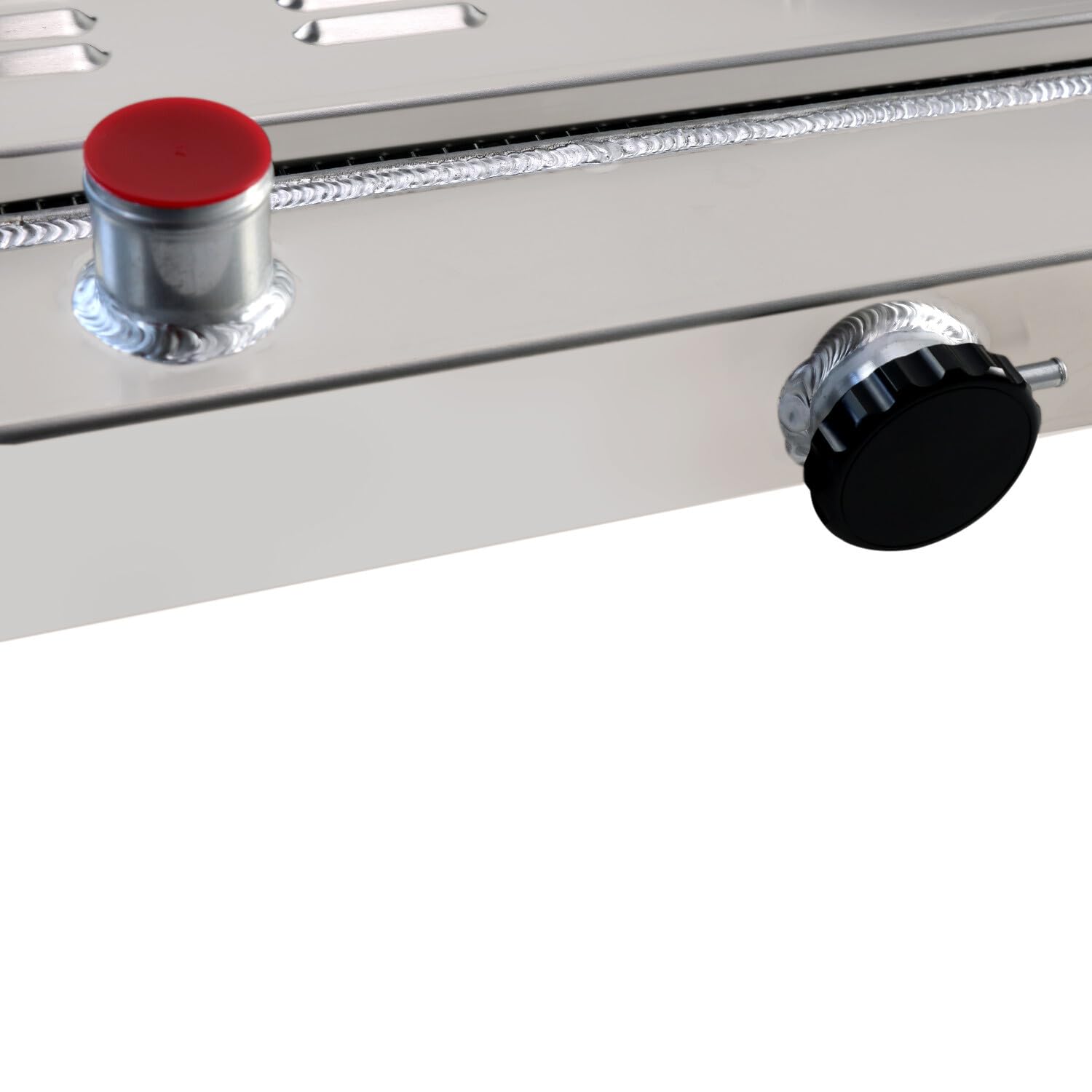 A construção em alumínio de alta qualidade, com costuras 100% soldadas e sem epóxi, garante durabilidade e resistência em condições climáticas extremas. As aletas de alta densidade, com espaçamento de 3/8”, proporcionam 25% mais filas dentro do núcleo, resultando em aproximadamente 1500 aletas de resfriamento, o que aumenta a capacidade de resfriamento em até 30%. Este radiador leve é um ajuste direto para OEM, facilitando a instalação e garantindo um encaixe preciso.