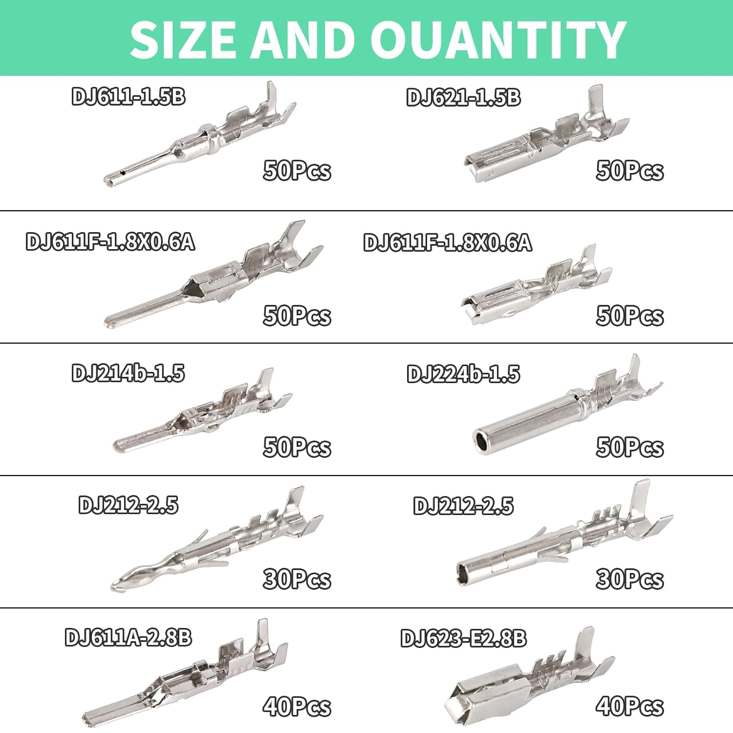 O Kit de Conectores Elétricos Automotivos de 440PCS é a solução definitiva para quem busca qualidade e versatilidade em conexões elétricas. Composto por 440 pinos terminais crimpáveis, tanto masculinos quanto femininos, este kit abrange tamanhos de 1.5mm, 1.8mm, 2.5mm e 2.8mm, sendo compatível com uma ampla gama de conectores de fios automotivos (22-12 AWG). Este conjunto atende a todas as suas necessidades de conexão, seja em projetos profissionais ou DIY.