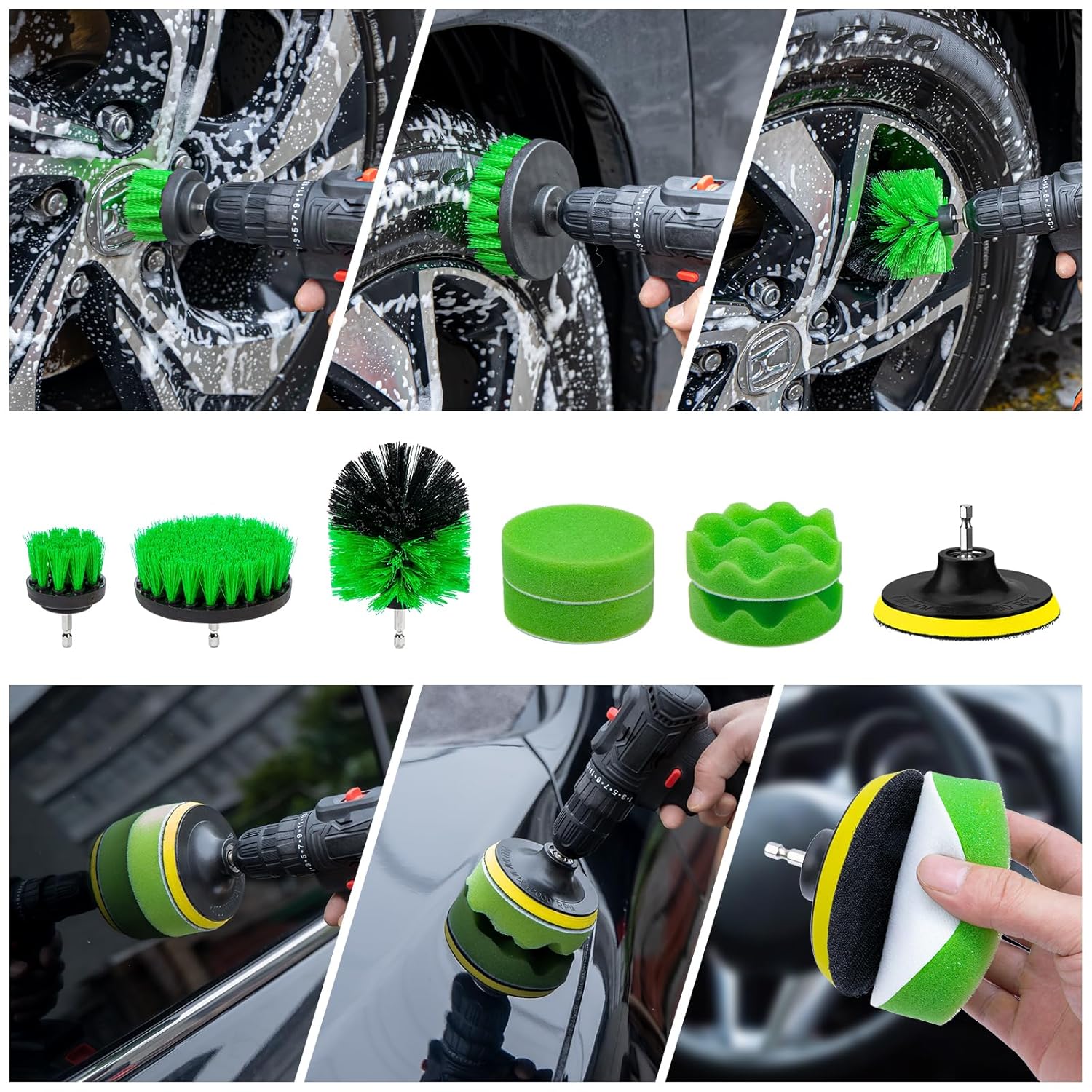 All other parts are decent quality; the towels and mittens are of respectable thickness, not the cheap paper-thin ones. The drill brushes make cleaning rims a breeze, and the polishing foam is great for small buffing tasks. The detail brush was a pleasant surprise, perfect for cleaning nooks and crannies in the car interior.