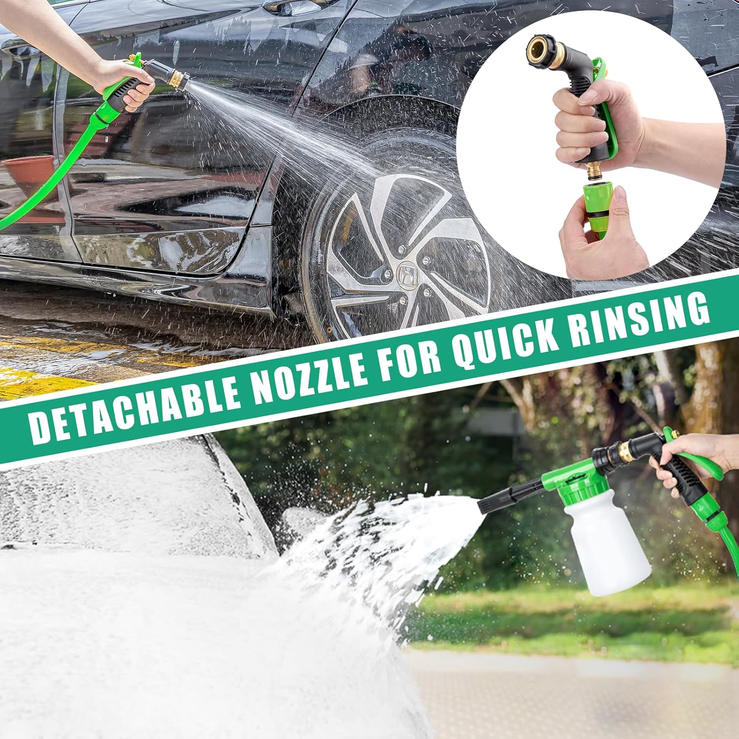 – Pistola de Espuma: 6 configurações de spray, fácil conexão a mangueiras padrão.