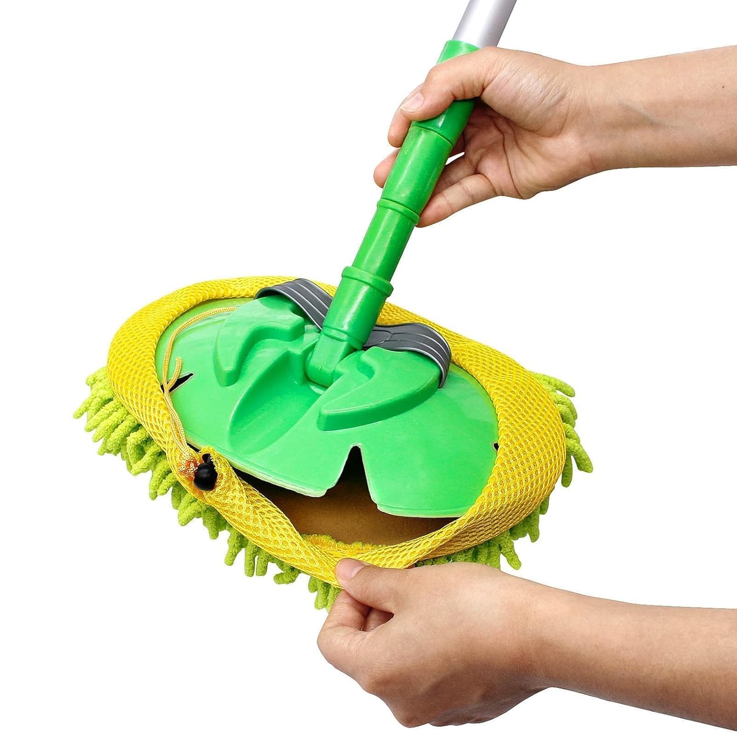 O material da cabeça do mop é macio, absorvente, livre de fiapos e arranhões, garantindo segurança ao ser utilizado em superfícies delicadas, especialmente na pintura do carro. Com longa durabilidade, é reutilizável e lavável, sendo a melhor escolha para limpar para-brisas, interiores de veículos, pintura automotiva e pneus. Este mop é ideal tanto para limpeza de carros quanto para uso doméstico.