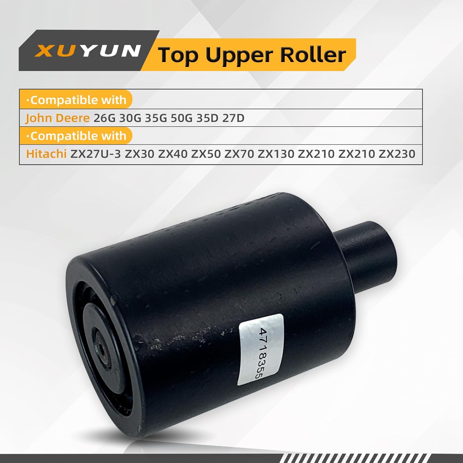 O rolo superior 4718355 é uma peça de reposição de alta qualidade, projetada para ser compatível com uma variedade de escavadeiras, incluindo os modelos John Deere 26G, 30G, 35G, 50G, 35D e 27D, bem como as escavadeiras Hitachi ZX27U-3, ZX30, ZX40, ZX50, ZX70, ZX130, ZX210 e ZX230. Este componente é essencial para garantir o funcionamento suave e eficiente das máquinas, proporcionando uma operação confiável em diversos ambientes de trabalho.