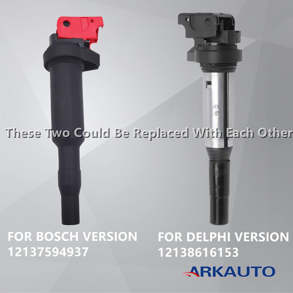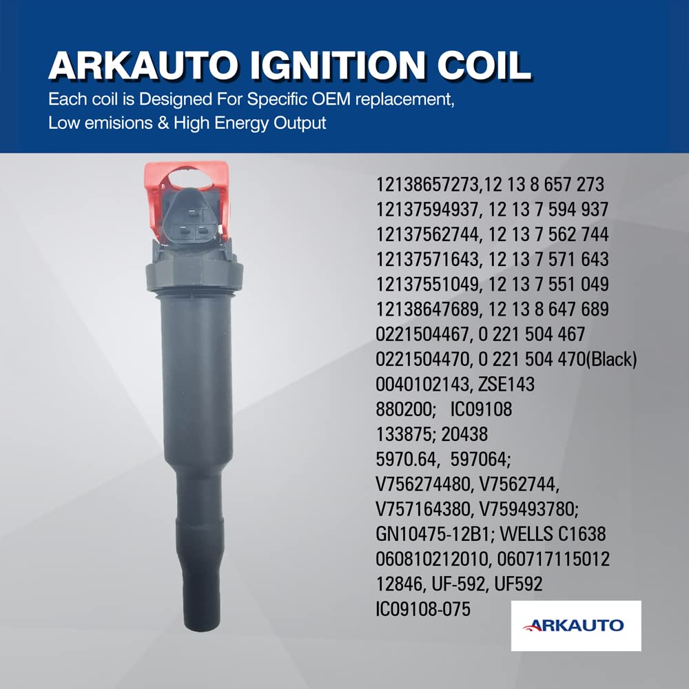 As bobinas de ignição ARKAUTO são desenvolvidas de acordo com os tipos originais OE, proporcionando uma substituição perfeita para suas bobinas defeituosas, funcionando exatamente como as originais. Este modelo é compatível com as peças OE: 12138657273, 12137594937, 12137562744, 12137571643, 12137551049, 12138647689, 0221504467, 0221504470, UF592. Recomendamos que os compradores comparem o número OE com as bobinas originais de seus veículos antes de realizar a compra, evitando assim erros que podem resultar em perdas desnecessárias.