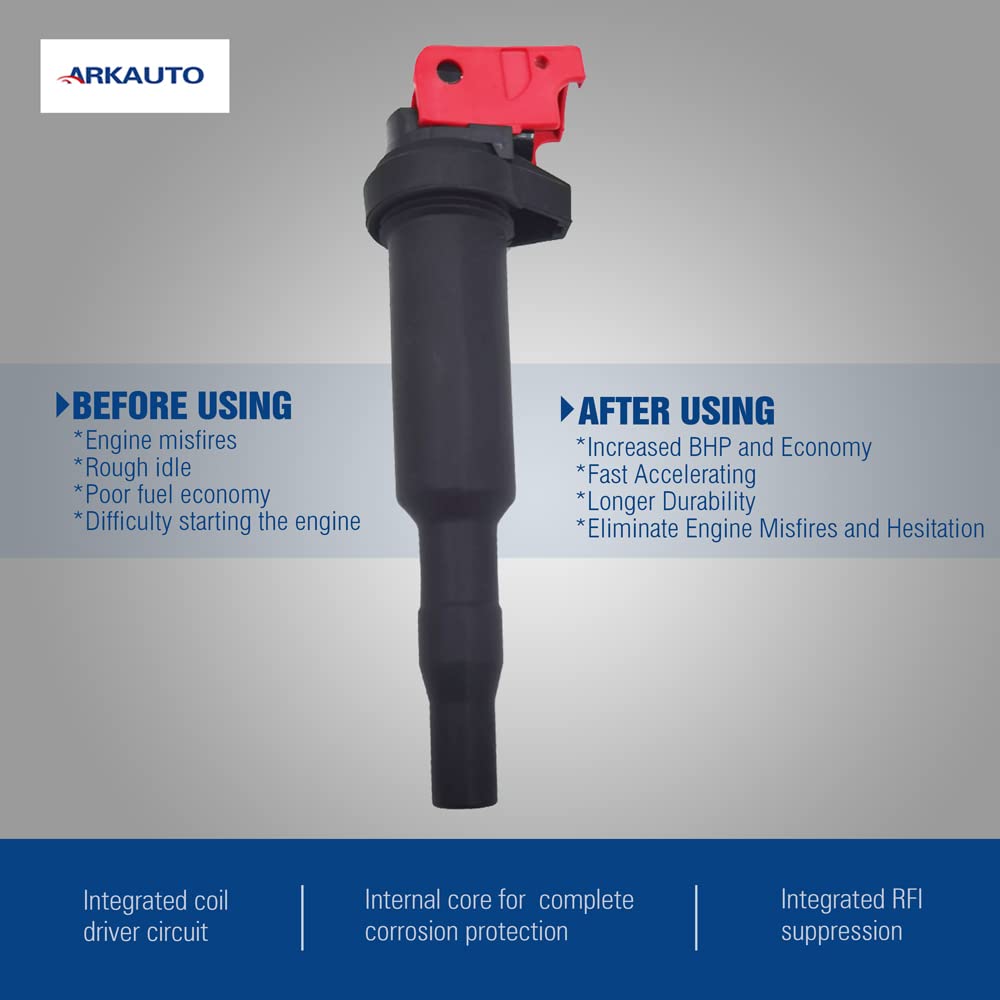As bobinas de ignição ARKAUTO ajudam a reduzir problemas comuns, como dificuldade para dar partida, tempo de partida prolongado, falhas de ignição, falta de potência, mudanças inconsistentes de transmissão, fouling de velas de ignição, falha prematura do conversor catalítico e má economia de combustível, além de evitar a iluminação da luz de verificação do motor.