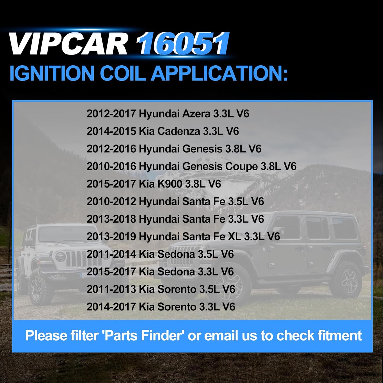 O conjunto de bobinas de ignição Vipcar, composto por 4 peças, é a solução ideal para quem busca desempenho e confiabilidade em veículos Hyundai e Kia. Compatível com modelos como o Hyundai Sonata (2006-2010) nas versões 2.4 e 3.3L, Santa FE (2007-2014) nas versões 3.3 e 3.5, além de Veracruz, Genesis, Azera (3.3 e 3.8), e os modelos Kia Sorento, Optima, Sedona, Amanti e Borrego, este produto foi projetado para atender às necessidades específicas de cada um desses veículos.
