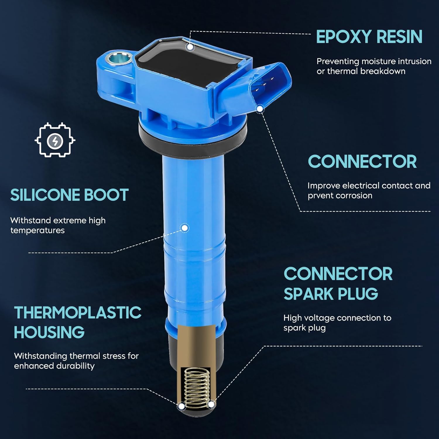 - 🔥 Materiais de Alta Qualidade: As bobinas de ignição Hurotoms são fáceis de instalar e fabricadas com materiais de alta qualidade. Cada bobina é projetada para aplicações específicas, com baixa emissão e alta saída de energia. O composto resistente ao calor garante durabilidade e resistência ao estresse térmico, reduzindo falhas de ignição e vibrações do motor.