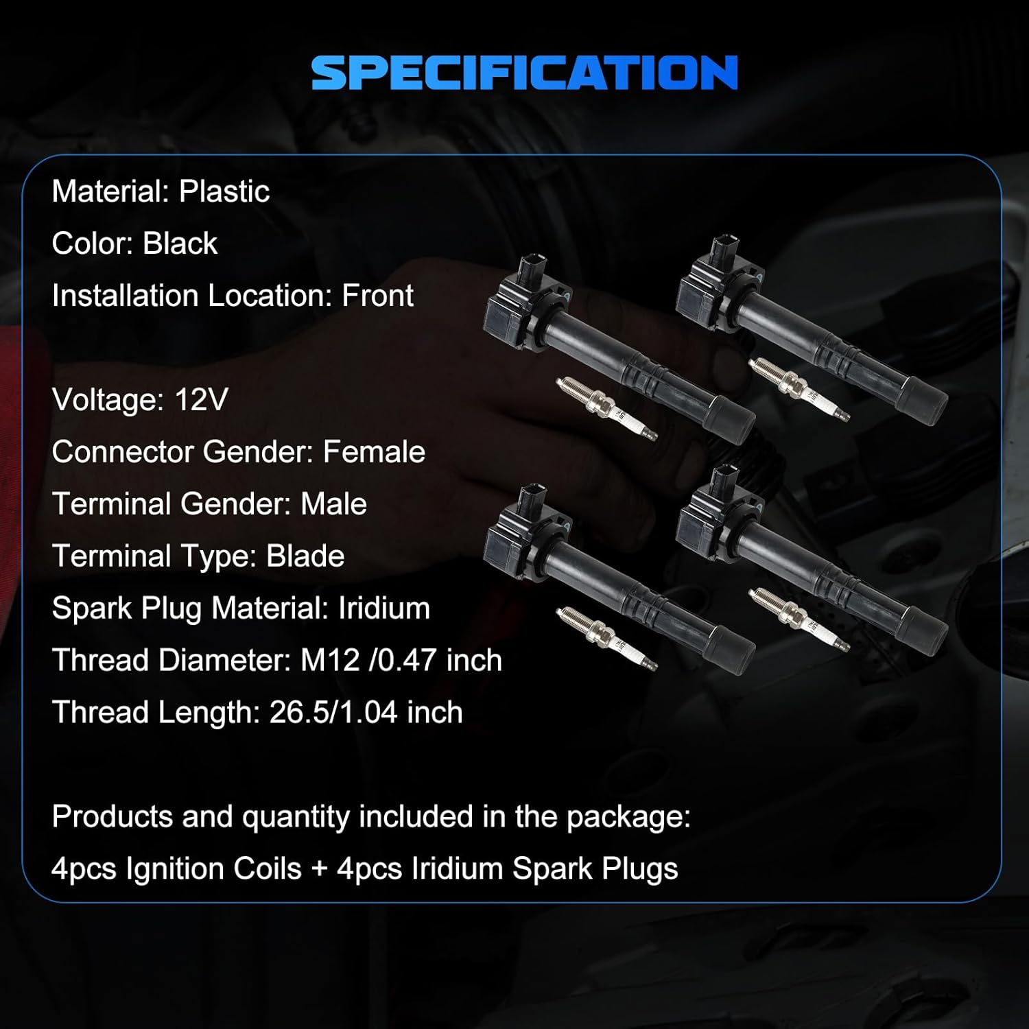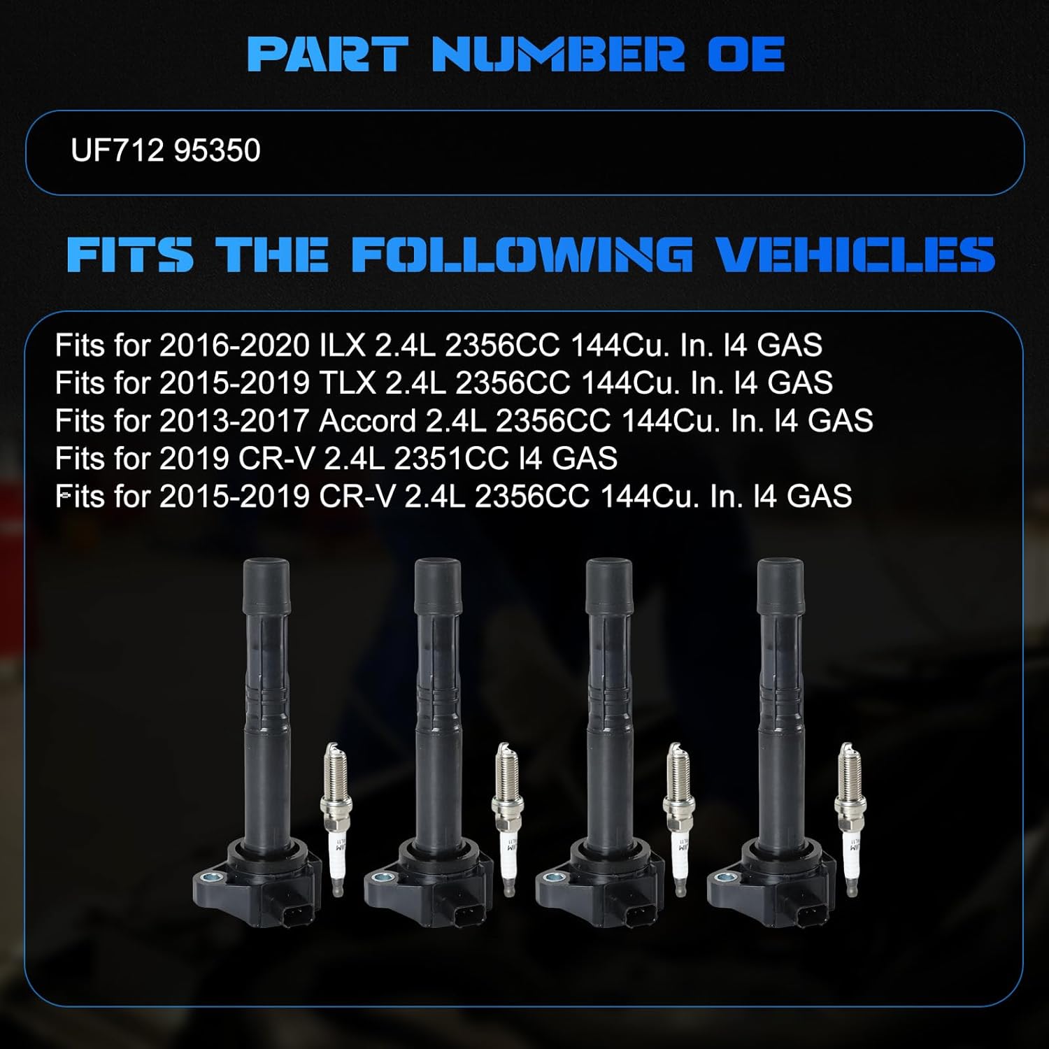 Kit de Bobinas de Ignição UF712 e Velas de Ignição Iridium 95350 - Compatível com Accord 2013-2017, CR-V 2015-2019, ILX 2016-2020, TLX 2015-2020 2.4L - 4 Peças