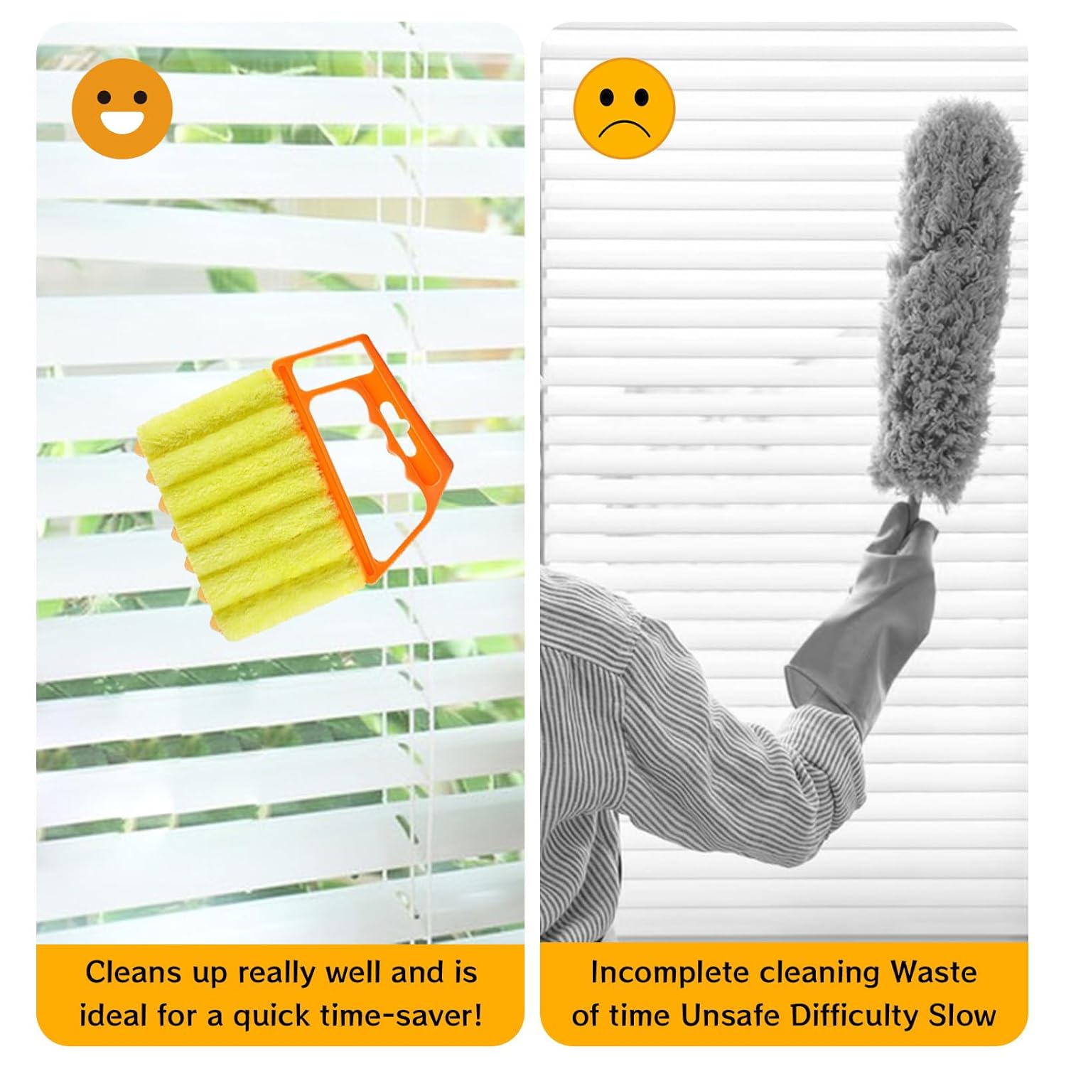 2. Uso da Escova de 7 Dedos: Segure a escova pelo cabo ergonômico e deslize-a suavemente sobre as persianas ou superfícies desejadas, permitindo que os dedos da escova penetrem nas fendas para remover a poeira acumulada.