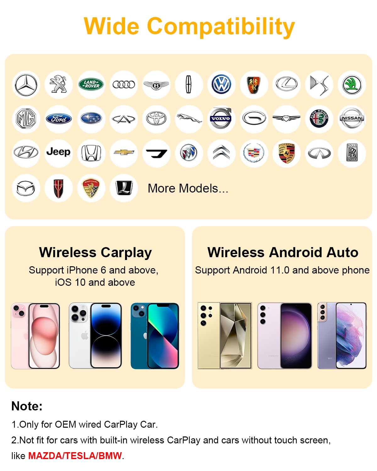 Compatível com mais de 800 modelos de carros fabricados após 2016, o adaptador é uma escolha prática para quem busca modernizar seu veículo. No entanto, é importante notar que não é compatível com modelos da BMW e Tesla. Antes da compra, verifique a compatibilidade do seu veículo com as informações fornecidas.