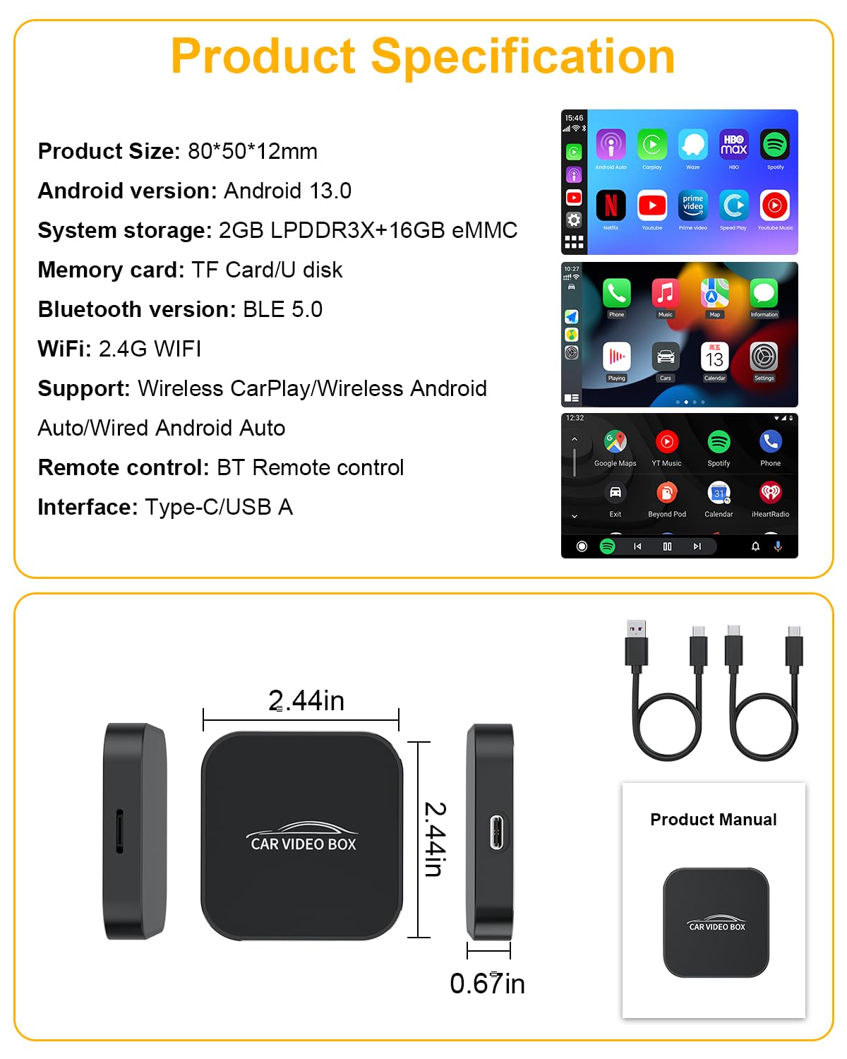 O Adaptador Wireless CarPlay não é apenas uma ferramenta de conectividade; ele também oferece uma experiência de streaming de vídeo inigualável. Com Netflix e YouTube integrados, você pode assistir a vídeos interessantes enquanto aguarda em um semáforo ou durante paradas. Além disso, o adaptador possui um slot para cartão TF, permitindo que você reproduza vídeos ou músicas offline, mesmo sem Wi-Fi. Com 2GB de RAM e 16GB de ROM, além de suporte para cartões TF de até 256GB, você terá espaço de sobra para armazenar seu conteúdo favorito.