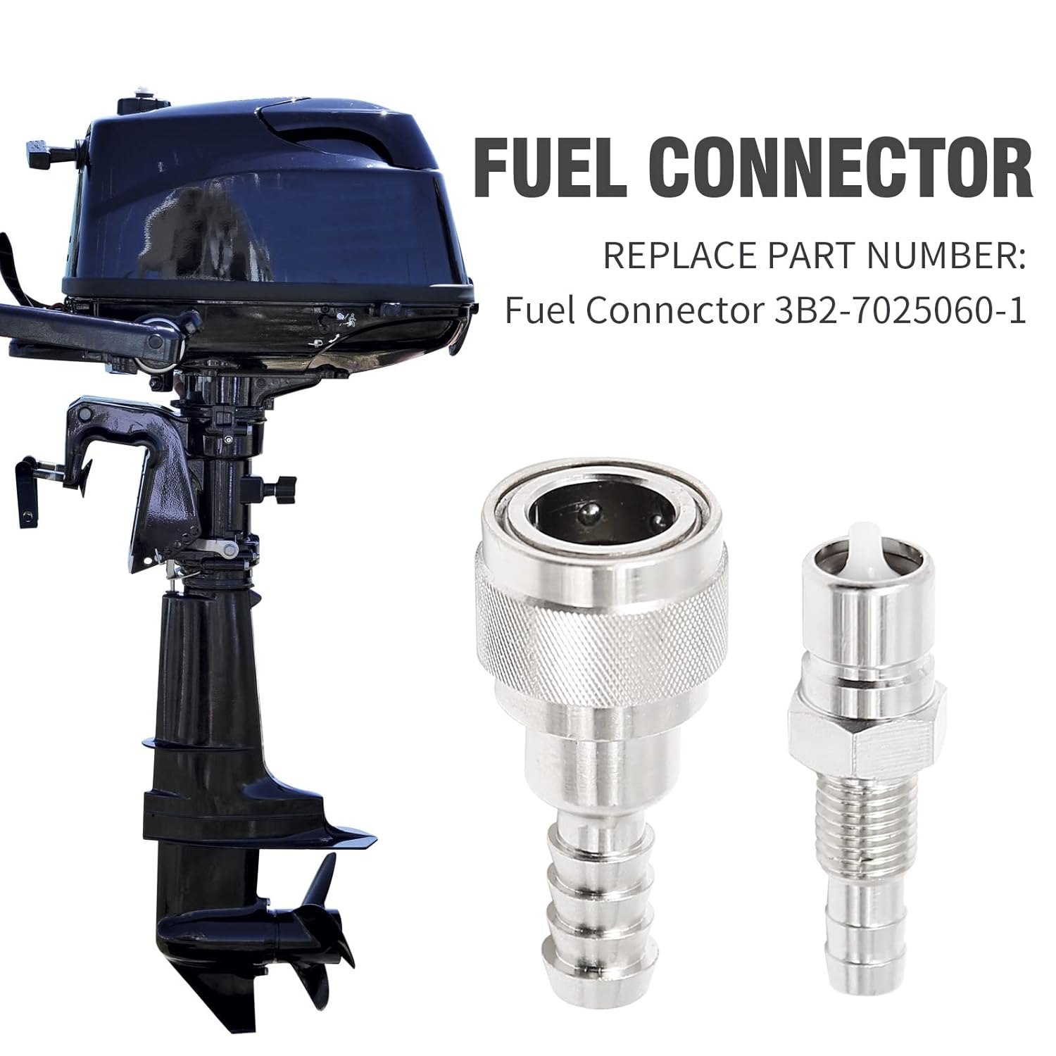 - Ajuste: Este conector de combustível de 5/16″ é compatível com motores de popa Tohatsu e Nissan de 2 e 4 tempos, incluindo modelos de 5, 6, 8, 9.8, 9.9, 15, 18, 20, 30, 40, 50, 60, 70 e 90 HP.