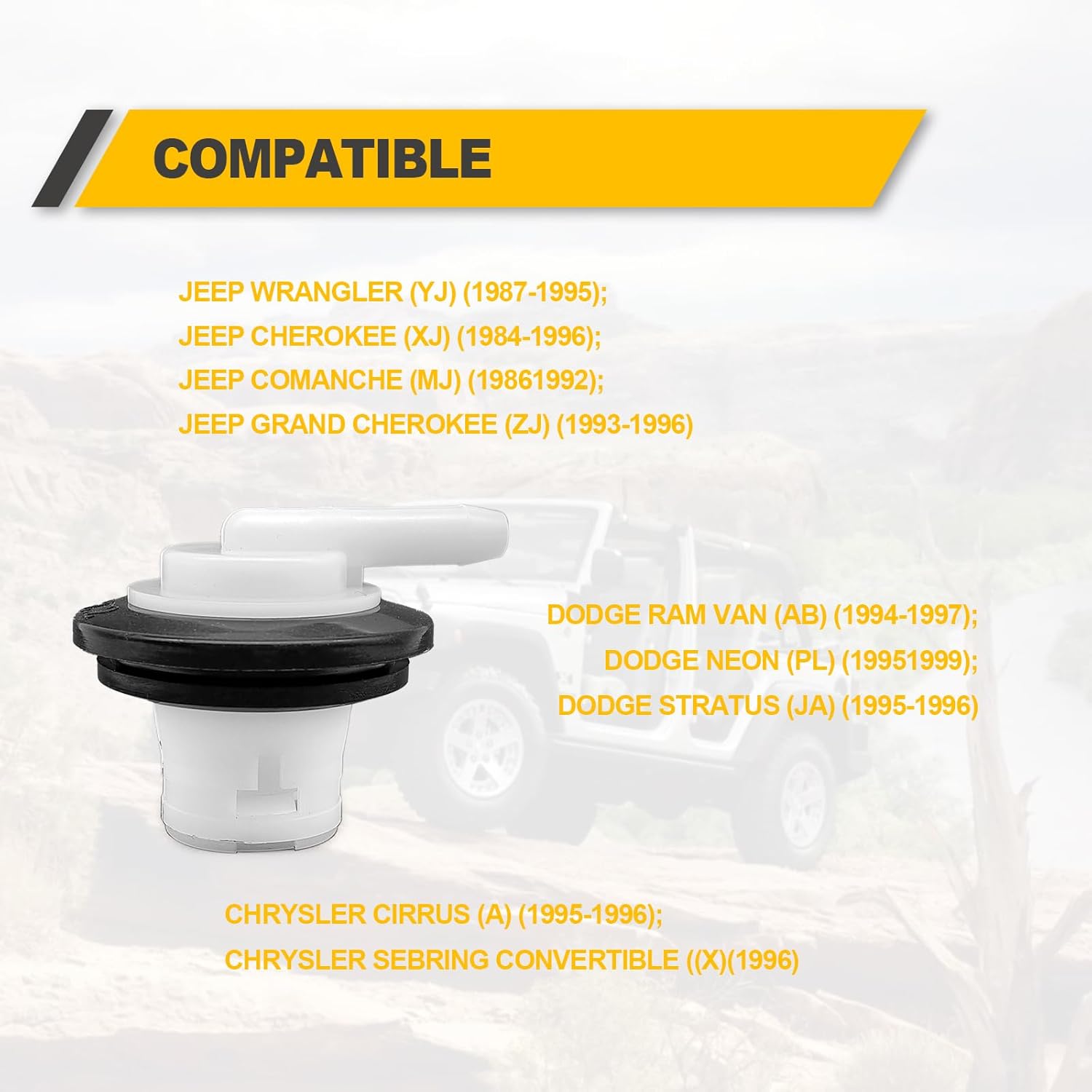 - Compatibilidade: Compatível com Jeep Wrangler (YJ) de 1987 a 1995, Jeep Cherokee (XJ) de 1984 a 1996, Jeep Comanche (MJ) de 1986 a 1992, Jeep Grand Cherokee (ZJ) de 1993 a 1996, Dodge Ram Van (AB) de 1994 a 1997, Dodge Neon (PL) de 1995 a 1999, Dodge Stratus (JA) de 1995 a 1996, Chrysler Cirrus (JA) de 1995 a 1996 e Chrysler Sebring Convertible (JX) de 1996. Verifique cuidadosamente a compatibilidade com seu veículo antes da compra.