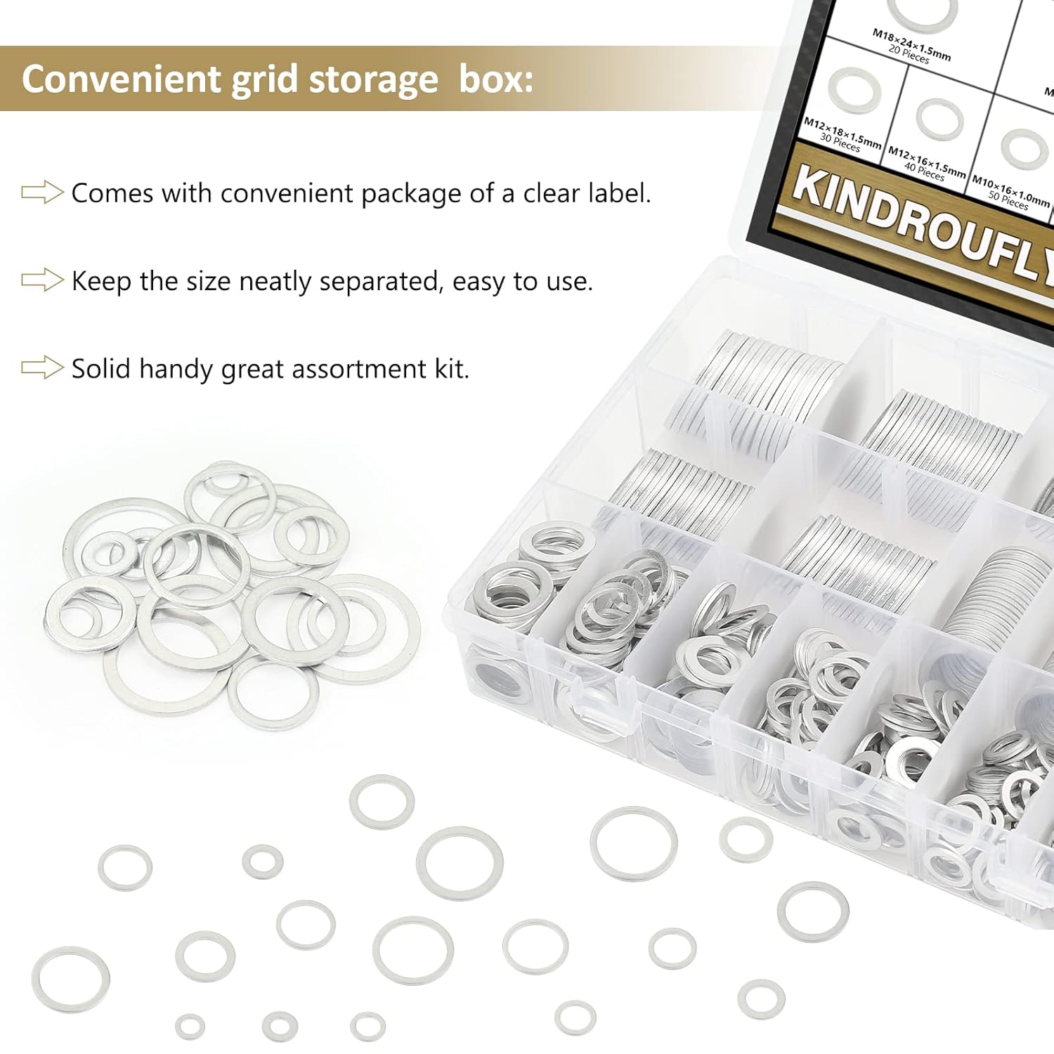 82 avaliações para Jogo de 560 Anéis de Vedação para Drenagem Automotiva – Washers de Alumínio Kindroufly em 18 Tamanhos (M6 a M24)