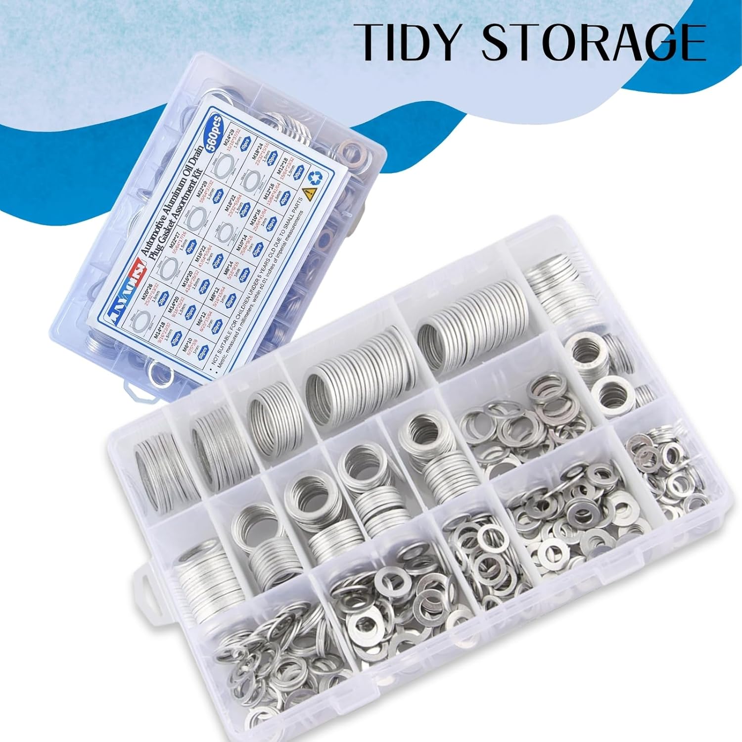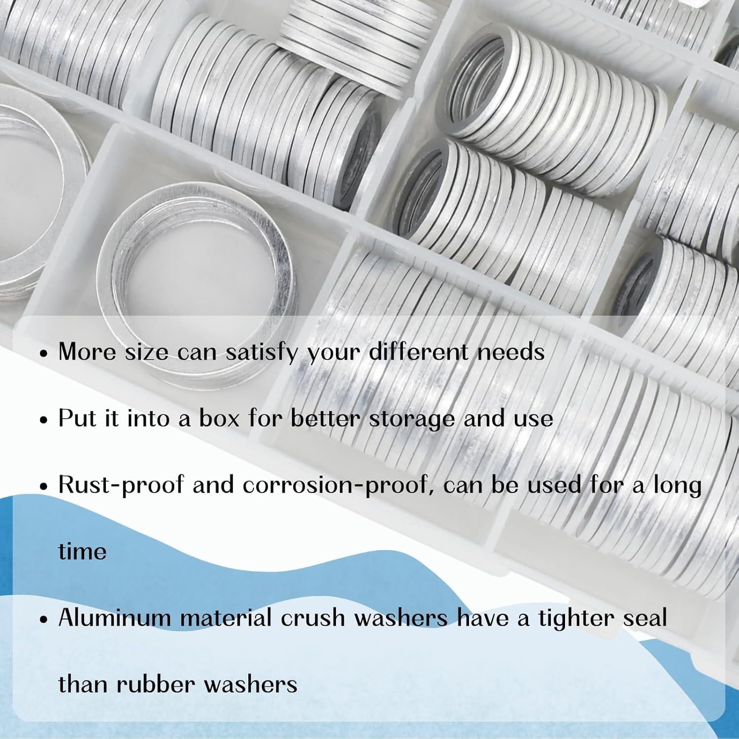 Kit de 560 Anéis de Vedação Crush para Plugue de Drenagem de Óleo - Gaxetas de Alumínio para Automóveis, Métricos M6 a M24