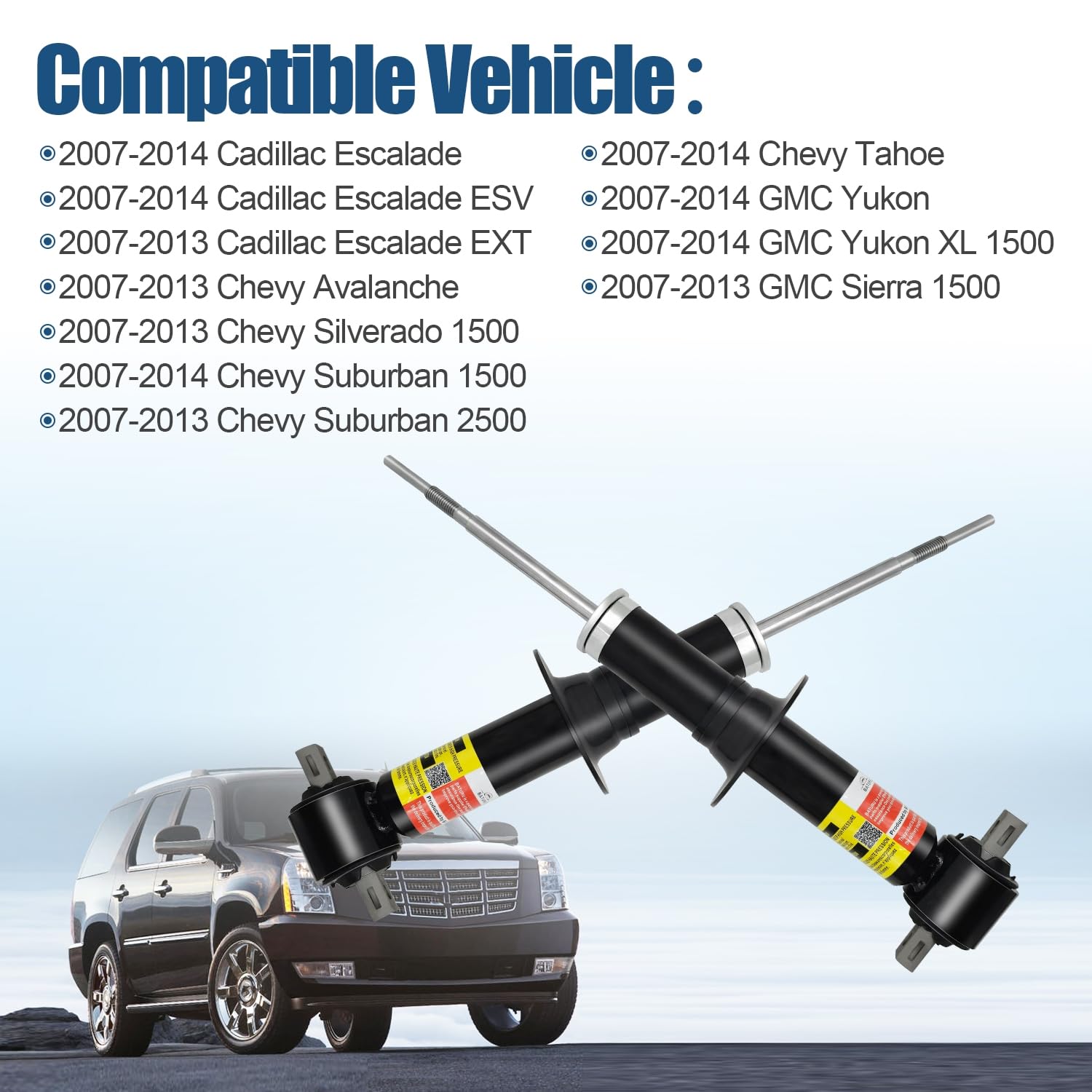 – Compatibilidade: Projetado para 2007-2014 Cadillac Escalade, Escalade ESV, Escalade EXT; 2007-2013 Chevy Avalanche, Silverado 1500; 2007-2014 Chevy Suburban 1500, 2500; 2007-2014 GMC Yukon, Yukon XL 1500; 2007-2013 GMC Sierra 1500; 2007-2014 Chevy Tahoe.