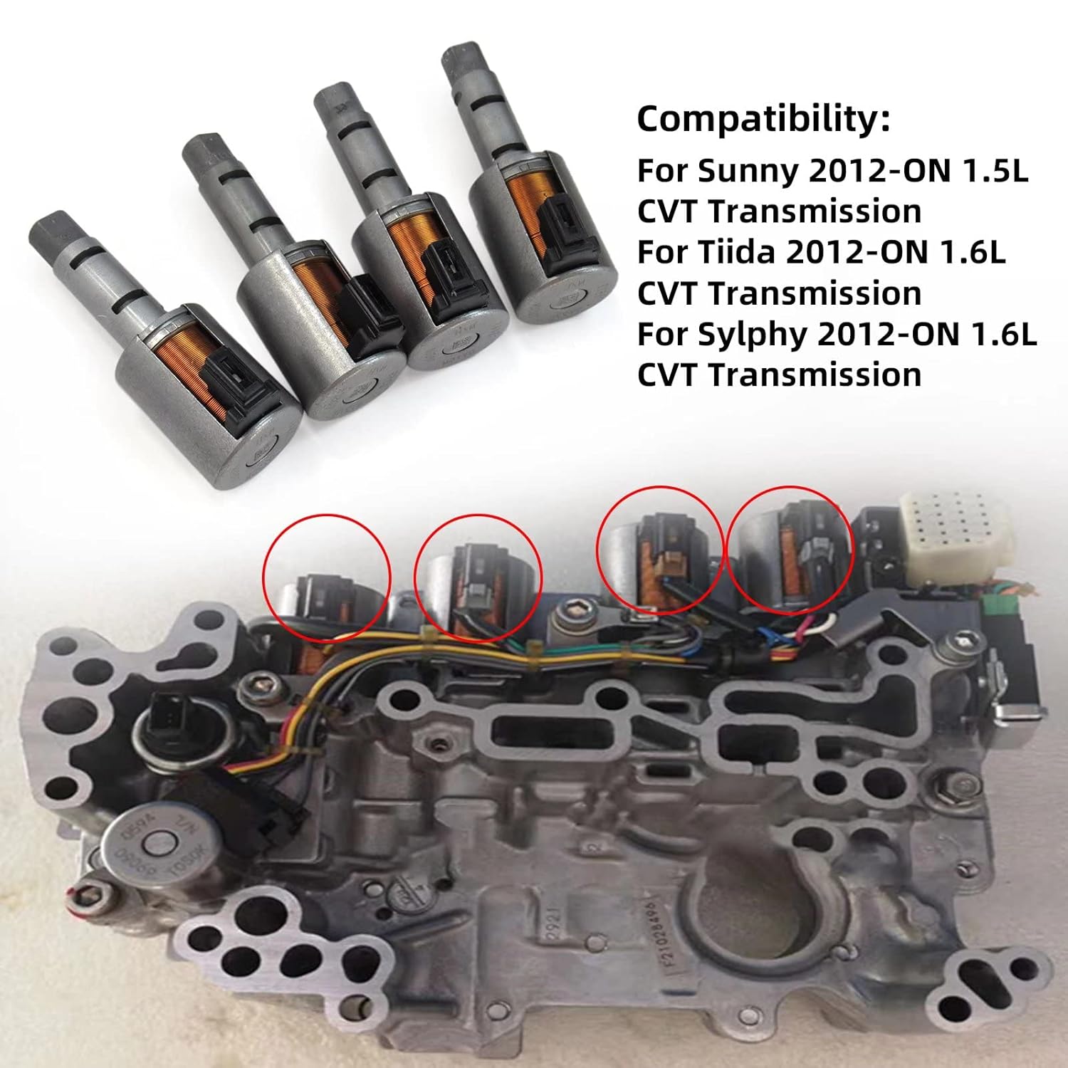 Apresentamos o conjunto de 5 peças de solenóides de transmissão CVT, projetado especificamente para os modelos Nissan Note, Sentra, Tiida e Versa, com os números de peça RE0F11A e JF015E. Este produto é a solução ideal para quem busca um desempenho otimizado e confiável em veículos equipados com transmissão CVT.