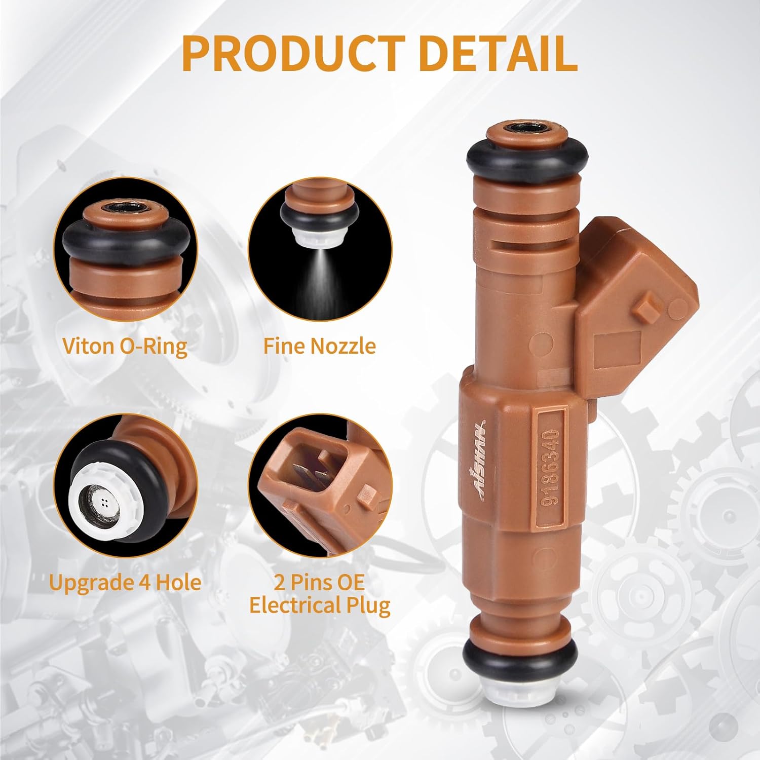 - SPECIFICATION: Material do injetor de combustível: plástico composto e aço inoxidável; O-ring viton pré-instalado; Número de furos: 4 furos; Número de terminais: 2 pinos; Pacote: 5 Injetores de Combustível.