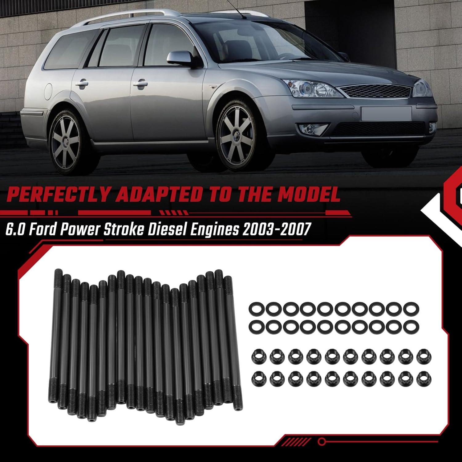 O Kit de Substituição de Parafusos de Cabeça 6.0L para motores Ford Powerstroke Diesel de 2003 a 2007 é a solução definitiva para quem busca durabilidade e desempenho superior em suas caminhonetes F250, F350, F450 e F550. Este kit é projetado com uma construção de alta resistência, utilizando aço liga tratado termicamente, que proporciona uma força de tração excepcional e resistência à corrosão. Isso garante um desempenho confiável mesmo sob as condições mais extremas de pressão e temperatura do motor.