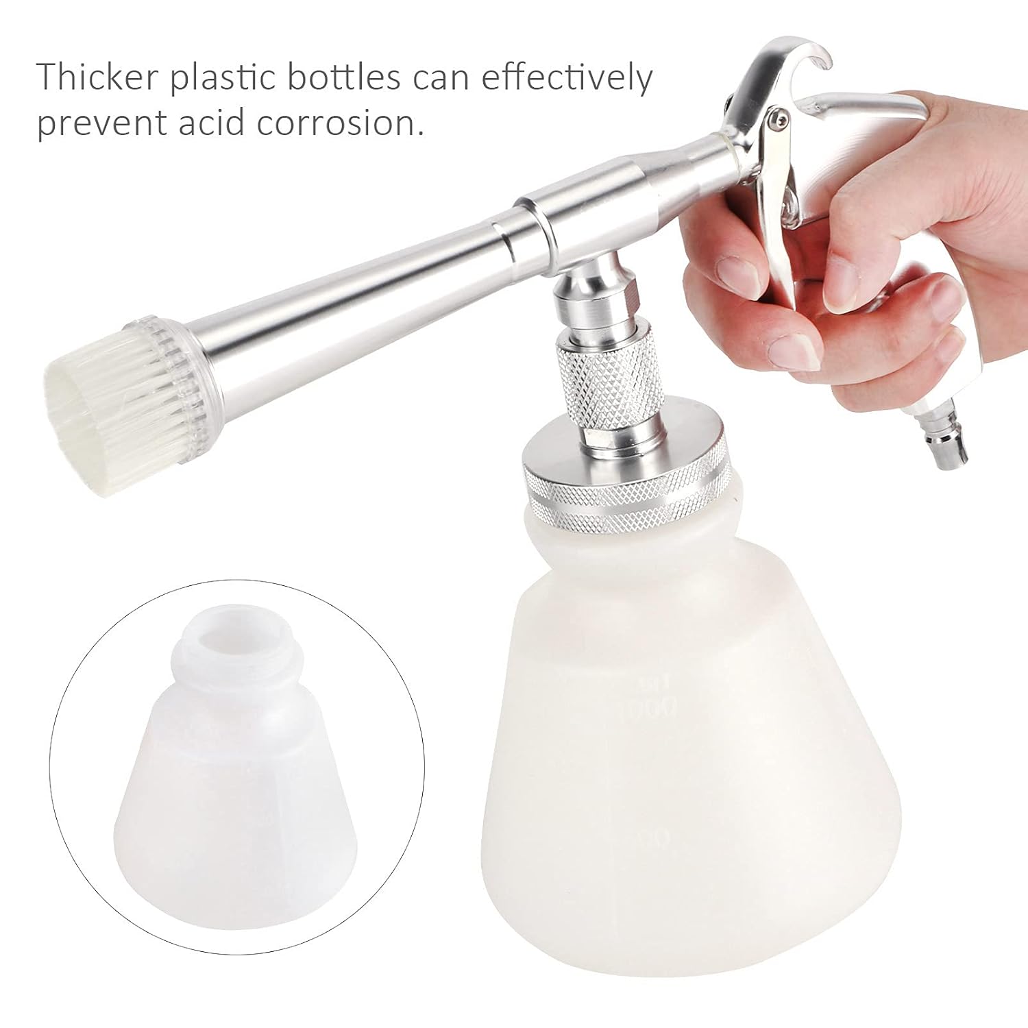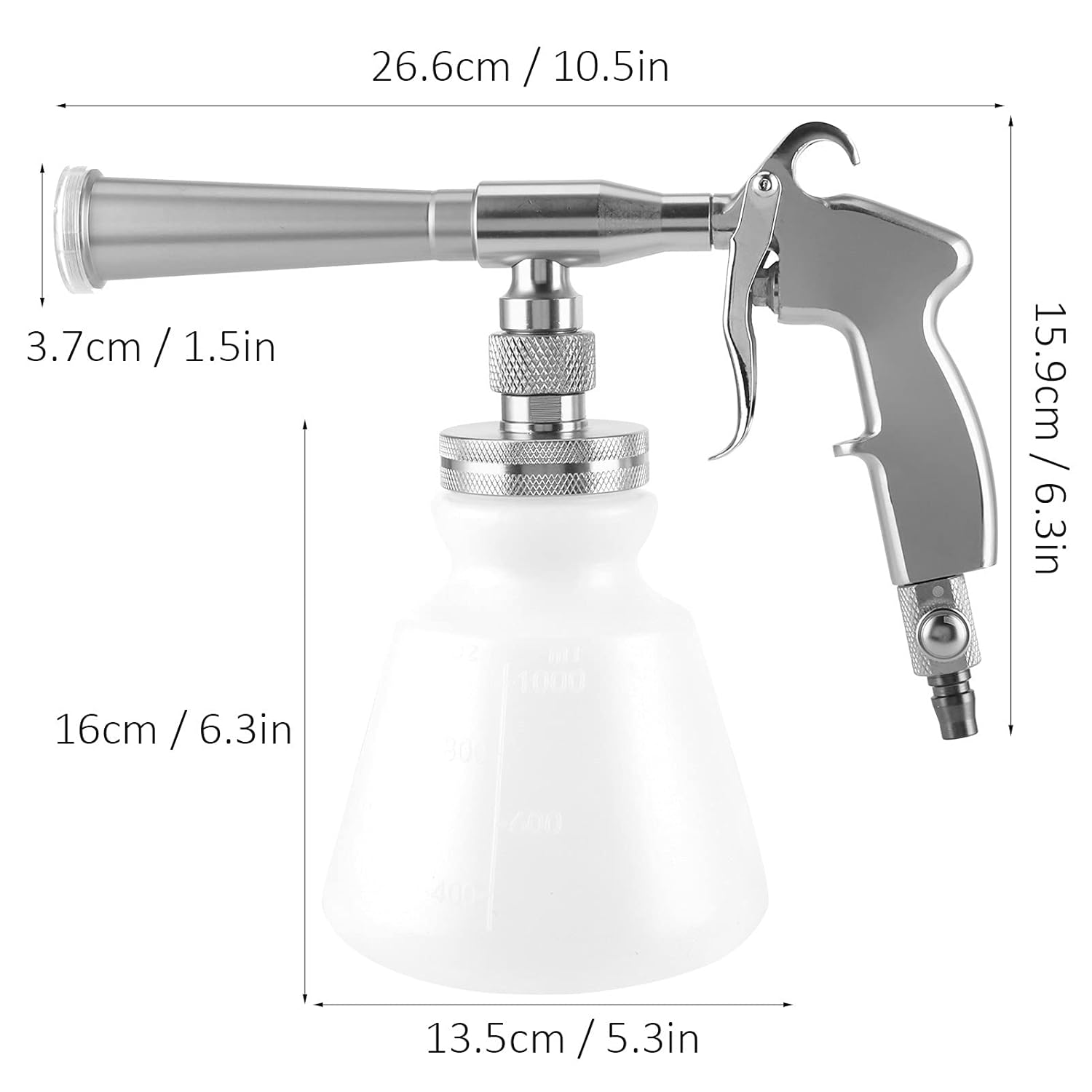 O design inovador de inserção profunda de garrafa permite uma fácil inserção em garrafas profundas, oferecendo uma capacidade de 1000ml para uso prolongado sem a necessidade de reabastecimentos frequentes. Com uma operação em uma faixa de pressão de 6.2 a 9.5KG, esta ferramenta de alta pressão limpa facilmente lã, couro, painéis e volantes, tornando-se indispensável para entusiastas de automóveis e profissionais de detalhamento.