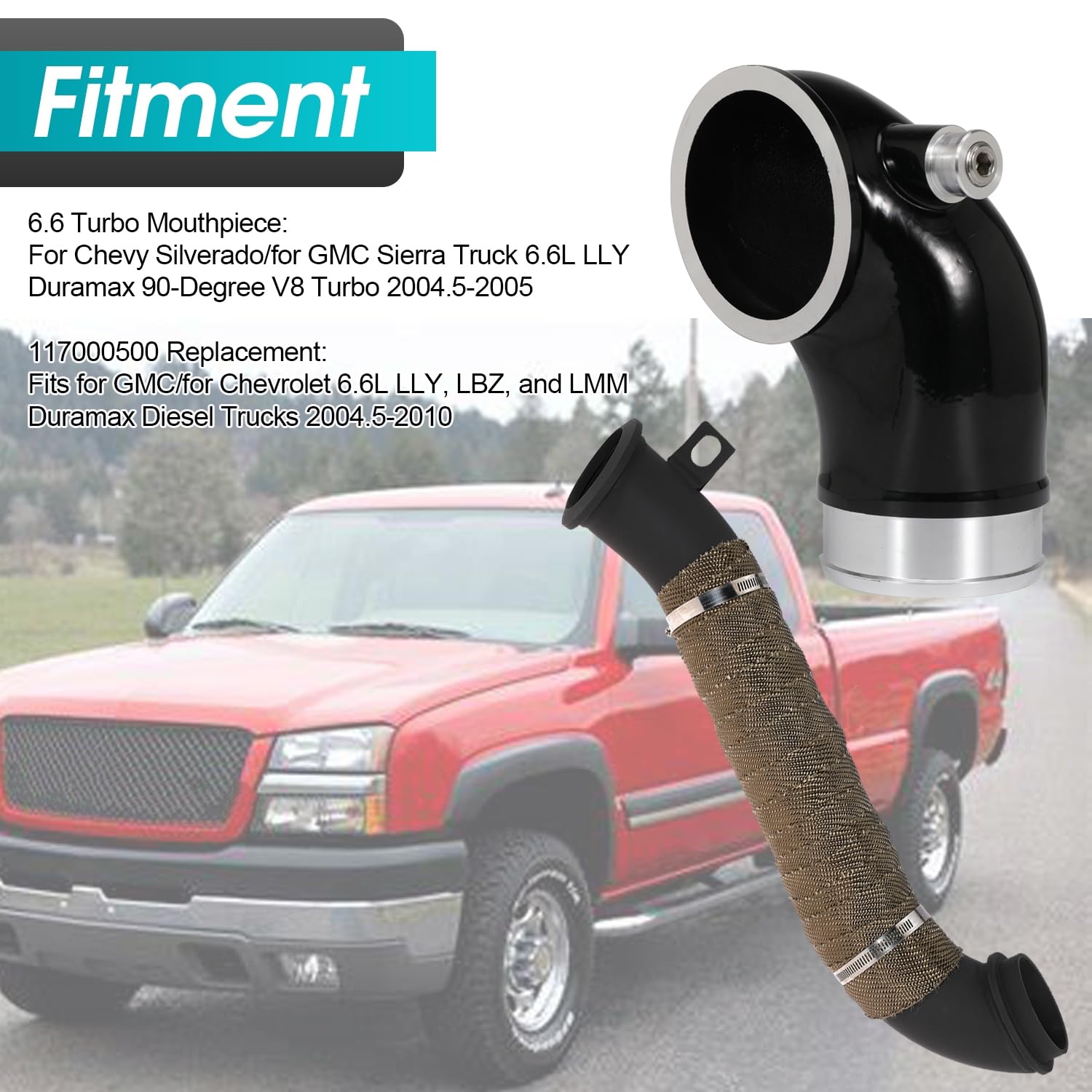 O 6.6 Turbo Mouthpiece é uma peça essencial para proprietários de caminhões Chevrolet Silverado e GMC Sierra equipados com o motor V8 Turbocharged 6.6L LLY Duramax, fabricados entre 2004.5 e 2010. Com o número de peça 76-1006B / 761006B, este produto foi projetado para ser uma atualização significativa em relação ao mouthpiece original, proporcionando uma série de benefícios técnicos que melhoram o desempenho do veículo.