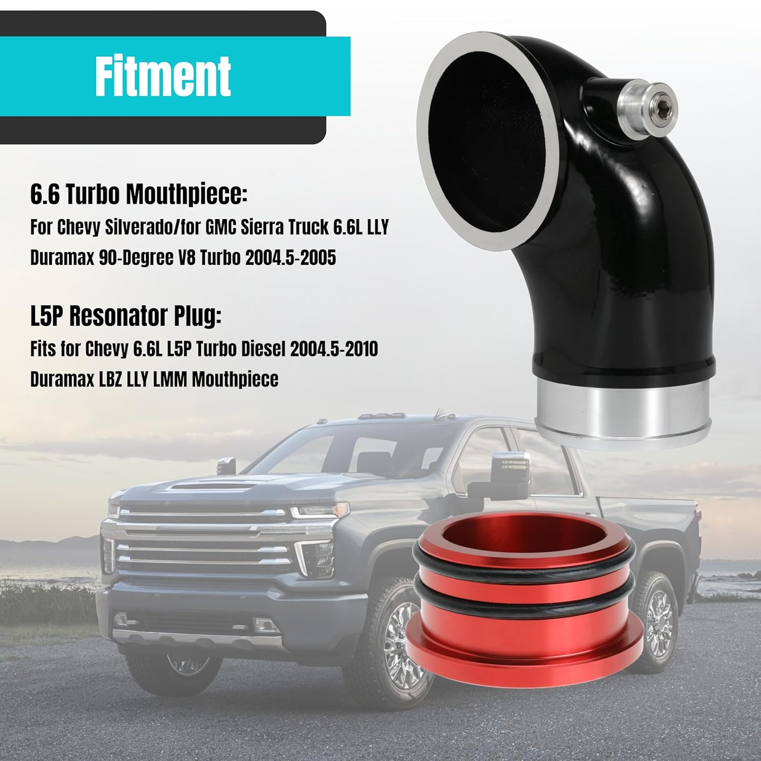 Bocal Turbo 6.6 LLY para Duramax 2004.5-2010 – Inlet Manifold Intake Elbow para Chevrolet e GMC Sierra com Billet Resonator