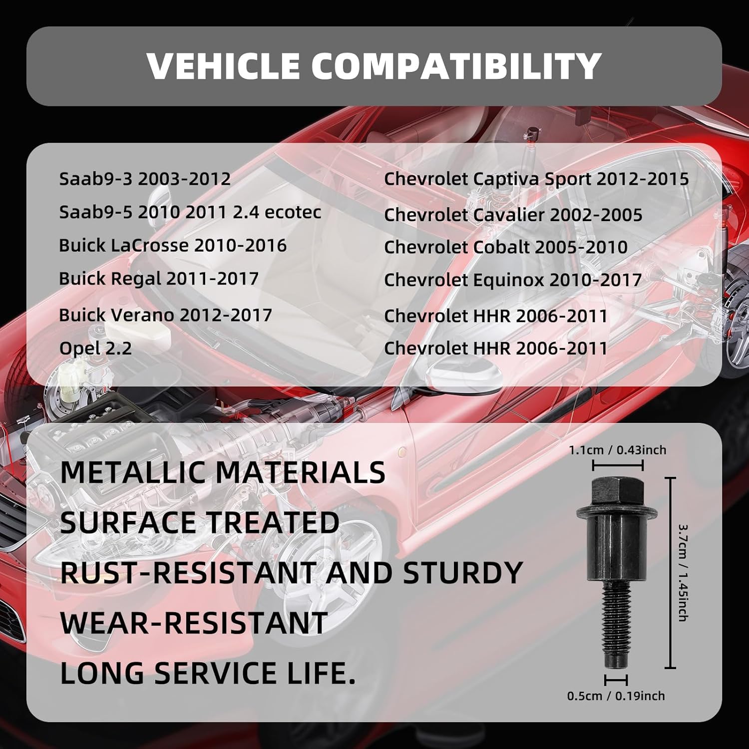 Os parafusos de guia da corrente de distribuição são componentes essenciais para a manutenção da estabilidade do sistema de corrente de distribuição do motor. O conjunto de 6 Parafusos de Guia da Corrente de Distribuição, que substitui a peça 11588522, é compatível com os modelos Saab 9-3 de 2003 a 2012, Saab 9-5 de 2010 a 2011, além de veículos Opel 2.2 e Chevy. Fabricados em metal de alta resistência, esses parafusos possuem um tratamento de superfície oxidada preta, garantindo resistência à corrosão e ao desgaste, o que os torna ideais para qualquer ambiente.