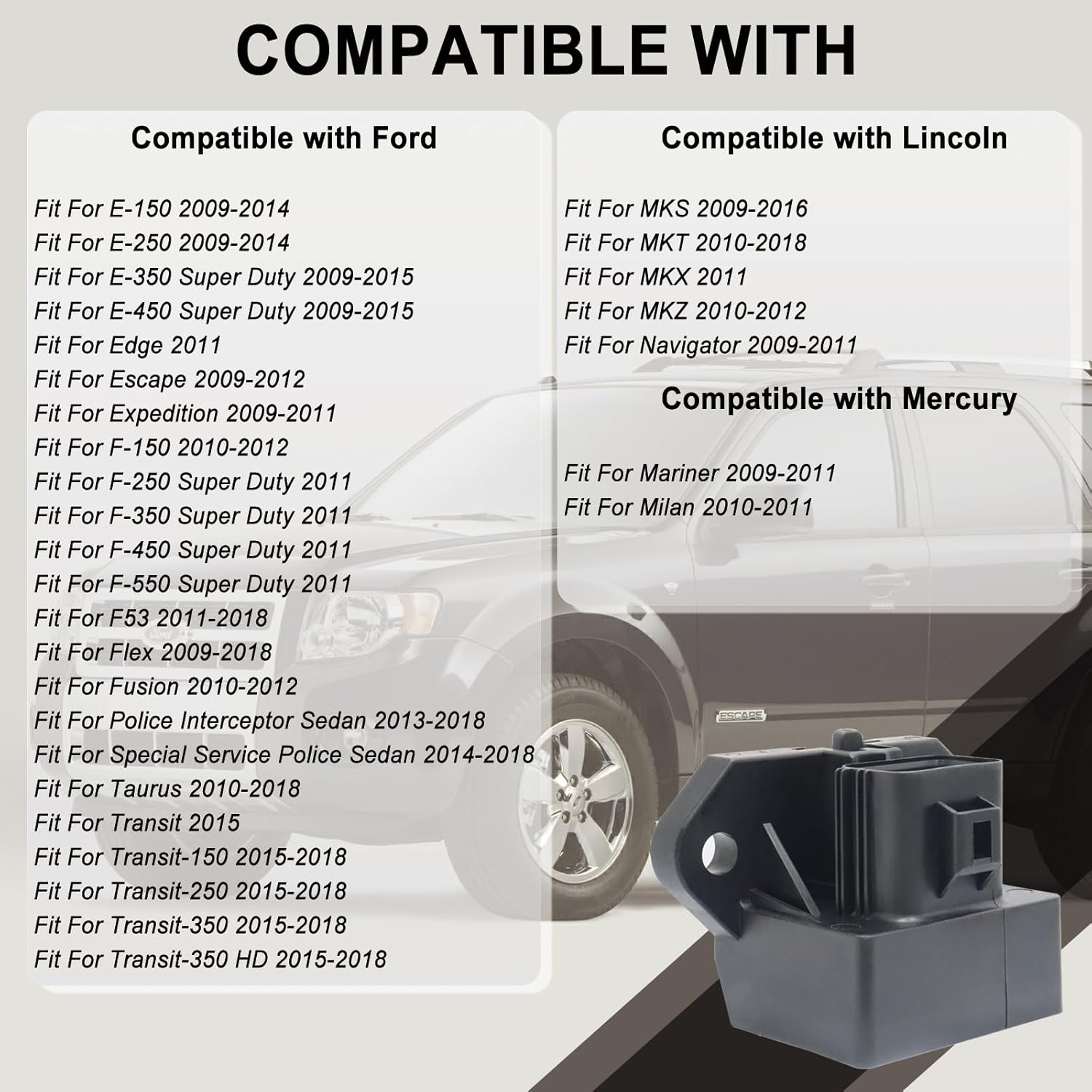 - Modelos Compatíveis: O Módulo de Relé da Bomba de Combustível é compatível com Ford E150, E250, E350, E450, F150, F250, F350, F450, F53, F550 Super Duty, Edge, Escape, Expedition, Flex, Fusion, Police Interceptor Sedan, Special Service Police Sedan, Taurus, Transit T150, T250, T350 HD; Lincoln MKS, MKT, MKX, MKZ, Navigator; Mercury Mariner, Milan (Consulte a página de detalhes para anos e modelos específicos).