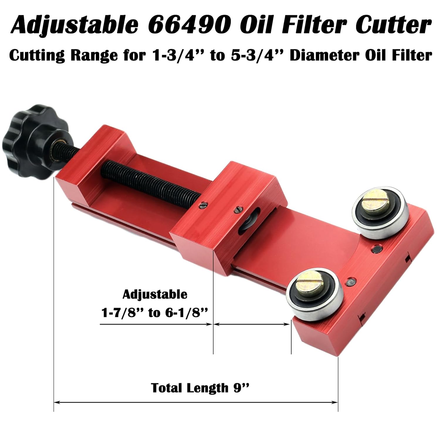 Com uma ampla faixa de corte, o 66490 substitui o OEM No.66490 e possui uma plataforma de trabalho ajustável que varia de 1-7/8″ a 6-1/8″. Isso significa que ele se adapta à maioria dos filtros de óleo disponíveis no mercado, com diâmetros que vão de 1-3/4″ a 5-3/4″. Além disso, essa ferramenta pode ser utilizada para cortar outros recipientes, desde que estejam dentro da faixa de tamanho adequada.