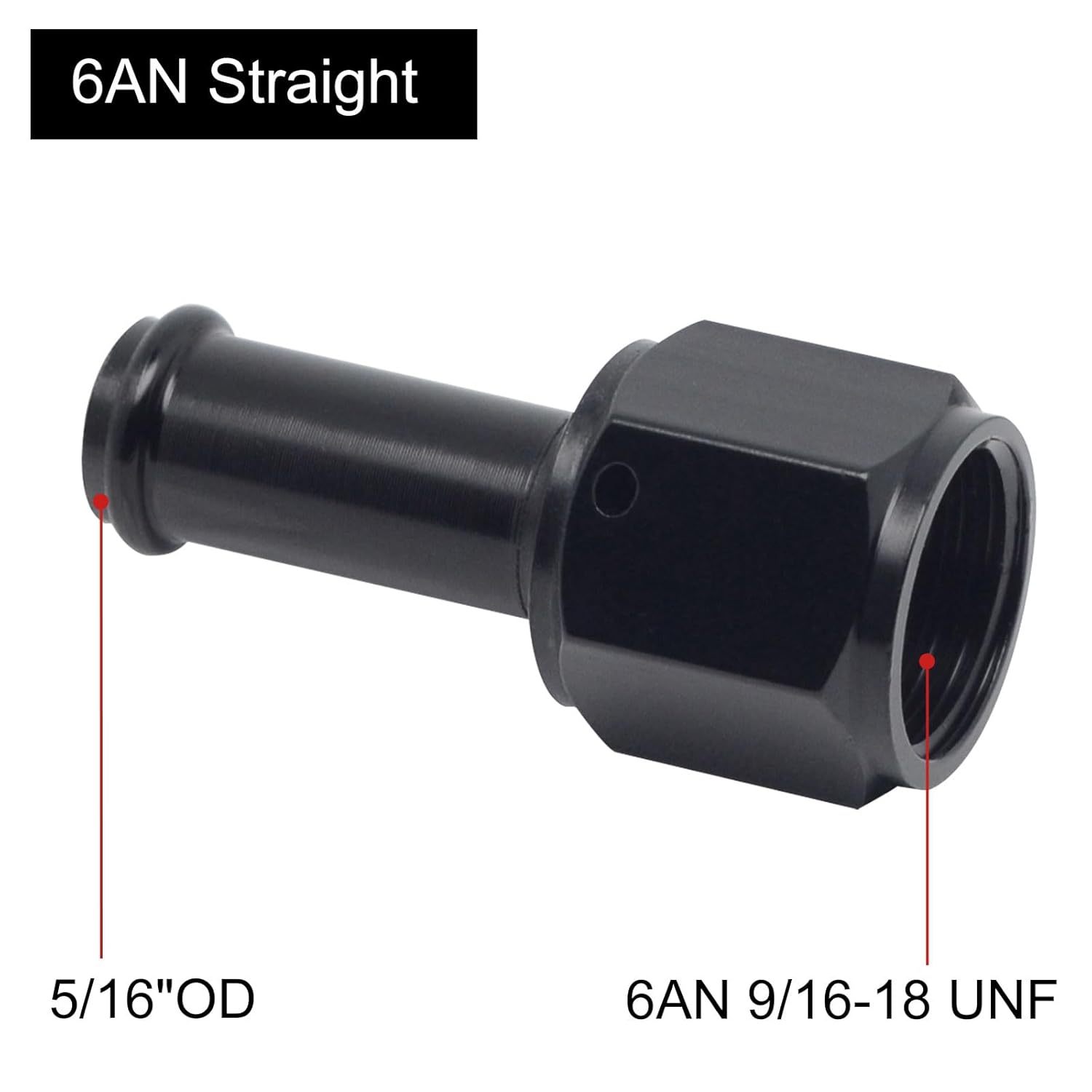– Tamanho: Rosca 6AN com especificação 9/16-18UNF; diâmetro externo do barb de 5/16 polegadas.