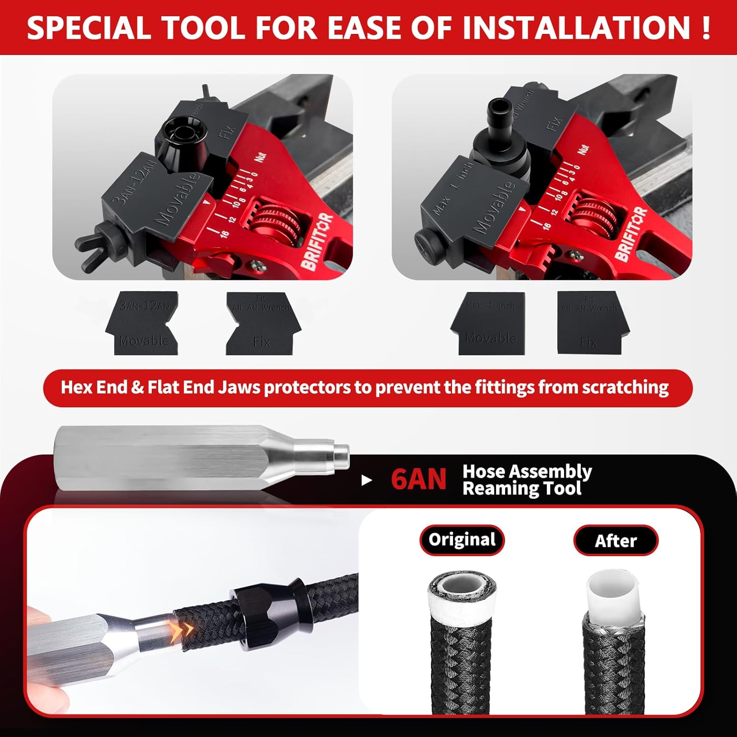 Os protetores de chave exclusivos evitam arranhões nos conectores AN, prevenindo corrosão e desperdício de investimento no sistema de combustível. Nossos protetores absorvem 70% do estresse de torque, protegendo as superfícies anodizadas dos conectores. Vale ressaltar que a chave AN não está inclusa no kit, mas pode ser adquirida em nossa loja.