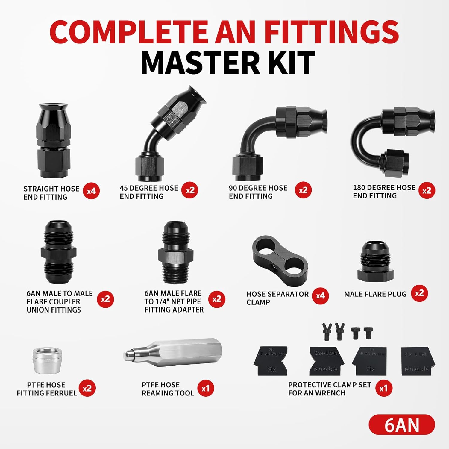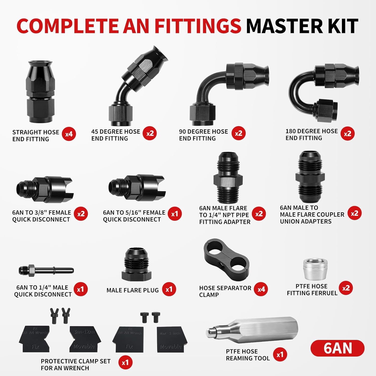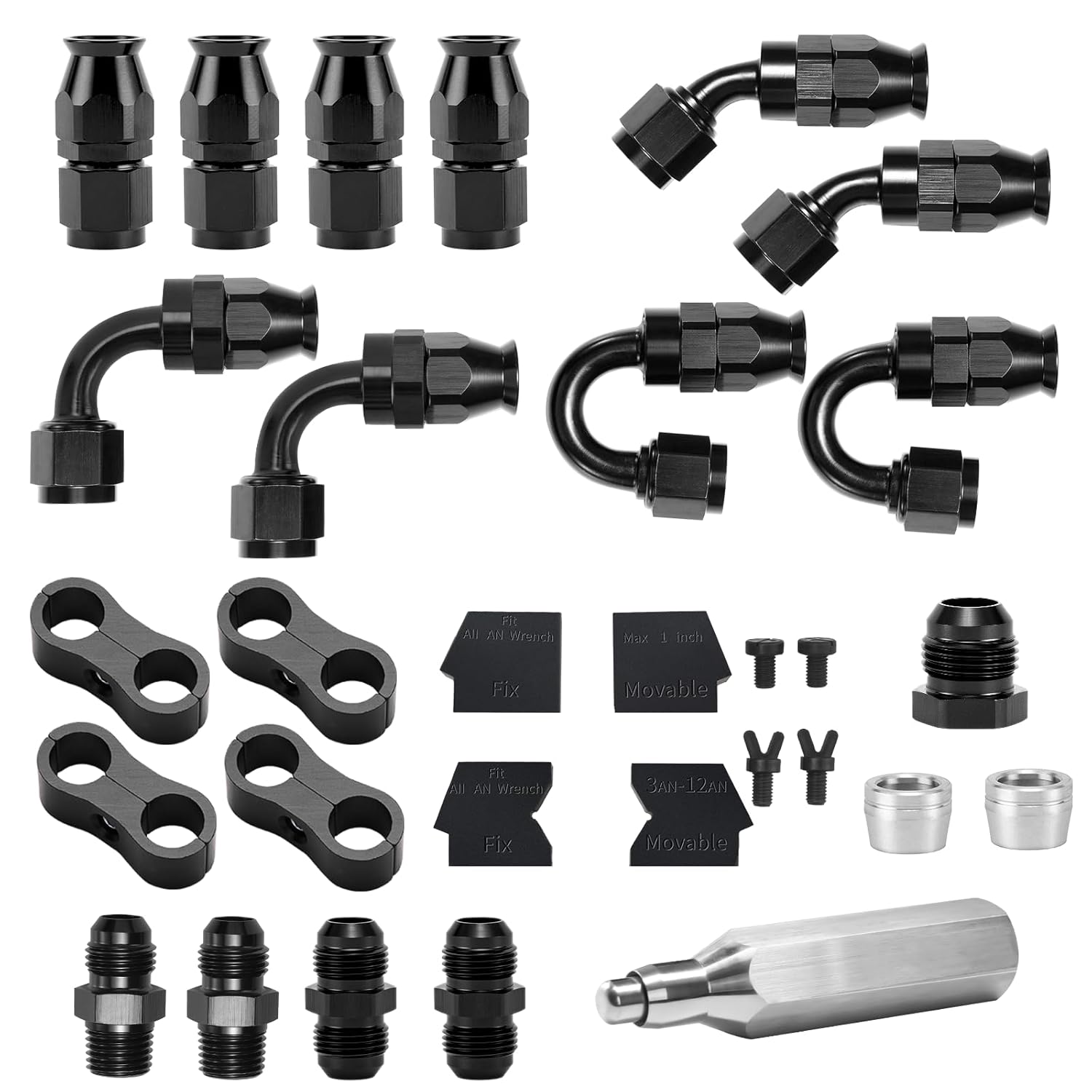 Este kit de conectores 6AN é amplamente utilizado em sistemas EFI LS, sistemas de injeção de combustível, sistemas de transmissão, sistemas de resfriamento de óleo, sistemas de turboalimentação, entre outros. Não é compatível com mangueiras de borracha ou CPE – consulte a descrição para os requisitos das mangueiras.