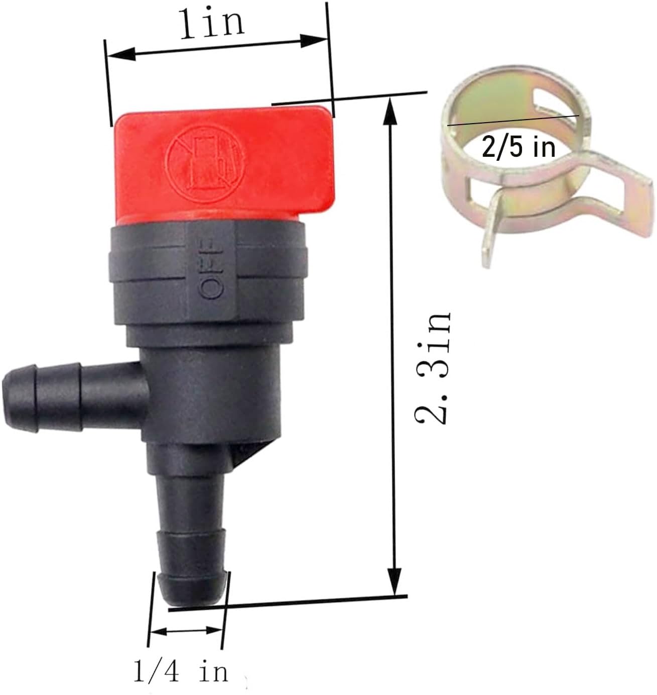 • Válvula de corte de combustível universal de 1/4 polegada: Compatível com modelos BS 494768, 493960, 698183, 698181, 697947, 5019H, 5019K; John Deere AM107340, AM36141, 698183MA, MU698183; Toro 54-3150, 1-603770, 5841-1, 5905-1.