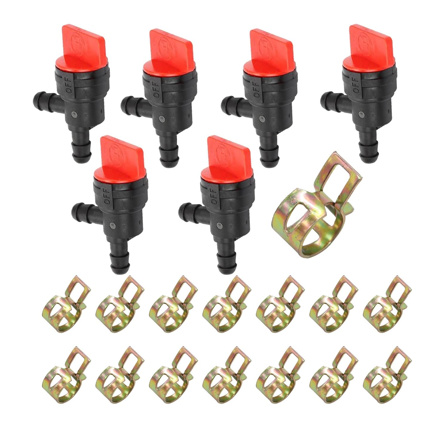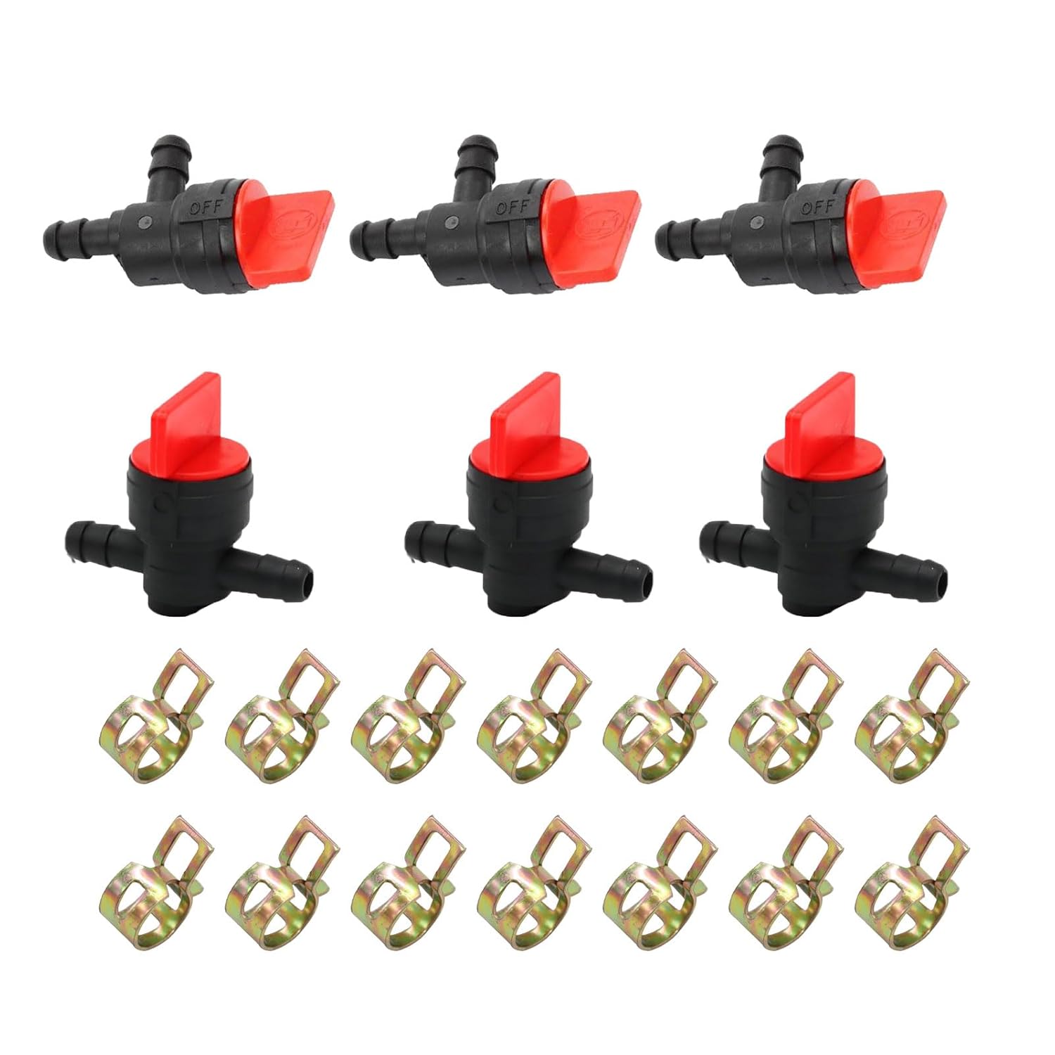 Válvula de Corte de Combustível Inline 1/4" 6 Peças 180° com Braçadeiras - Compatível com Briggs Stratton e Tratores de Grama 494768 698183