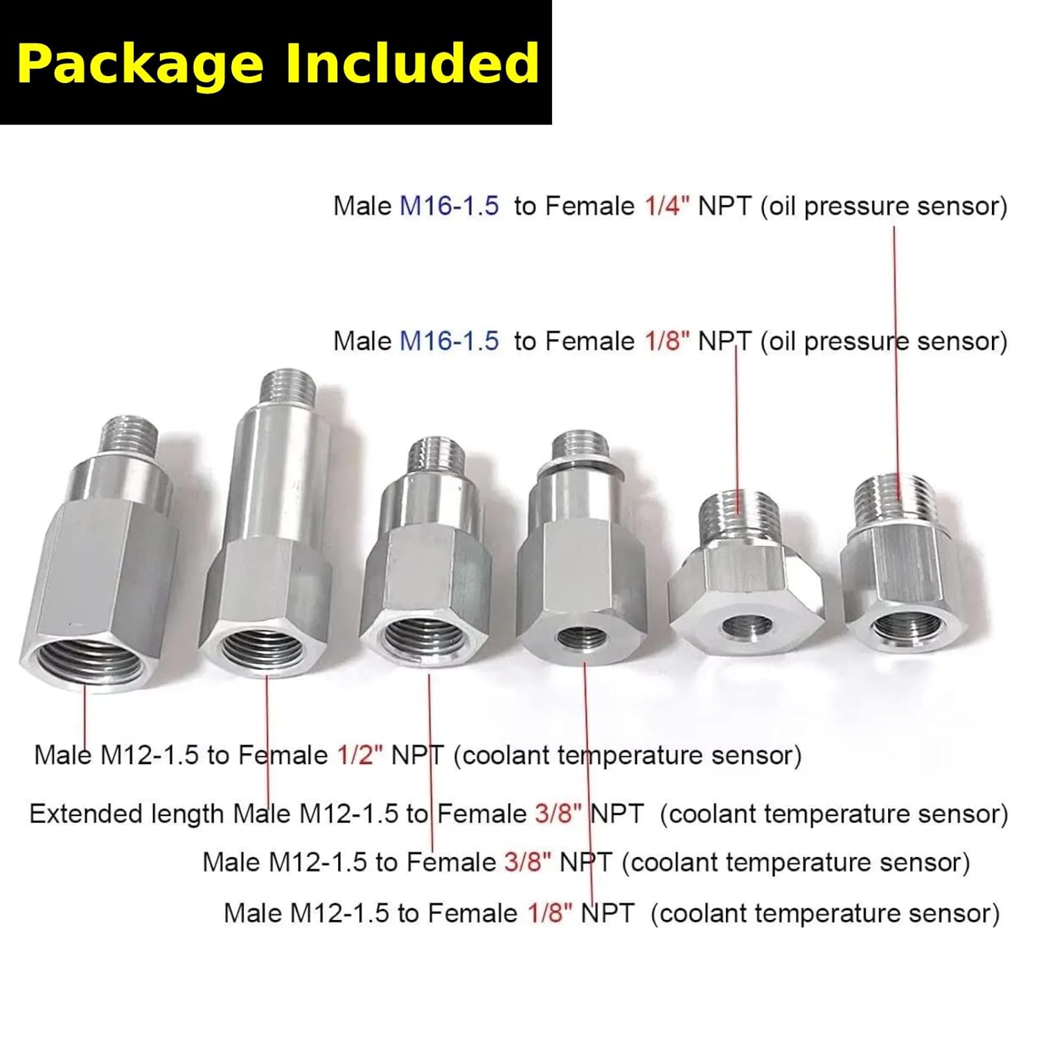 – Compatibilidade: Adaptadores para M12-1.5 e M16-1.5, compatíveis com sensores de temperatura e pressão de óleo.