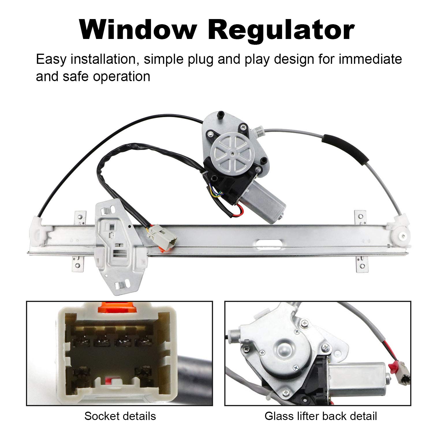 This regulator looks and function almost like the original, but the automatic up/ down function does not exist. But for $48 dollars, I dont mind holding the finger down a little longer. My old window glass and regulator was stuck and broken in the up position. The trick was separating the glass and the the regulator apart. I used a 10 mm flat dog bone ratchet and tucked my hand inside the door frame. Once I did that, I was able to take the regulator out. I hooked the new regulator and all the electrical hook up outside the door frame temporary to match the glass with the regulator. . I pushed down the glass midway and running the regulator up to match the 2 holes (KEY ON). This way I can easily bolt the 2 bolts that holds the glass to the regulator in the middle doorframe instead of up position. I permanently install the regulator to the glass inside the door frame . BOOM !! Working just fine
