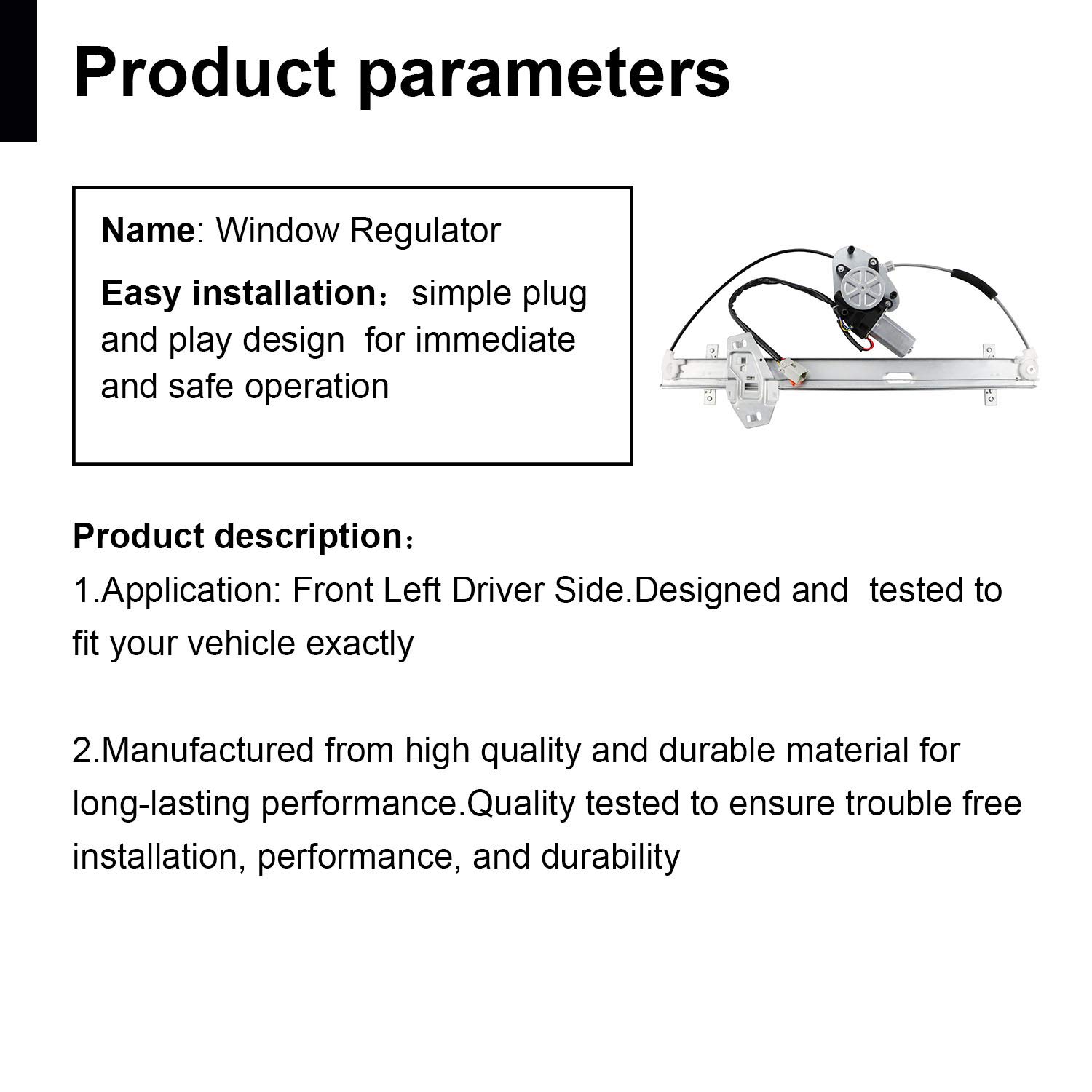 O Regulador de Janela Elétrico Frontal Esquerdo com Motor para Honda Pilot 2003 a 2008 (modelo 748-129) oferece uma solução confiável e eficiente para a substituição do sistema de janela do veículo. Com instalação fácil e compatibilidade garantida para os modelos mencionados, este produto proporciona operação suave e silenciosa. Seus principais benefícios incluem durabilidade, desempenho otimizado e a conveniência de um sistema elétrico que melhora a experiência do motorista e passageiros. Ideal para quem busca qualidade e funcionalidade em peças automotivas.