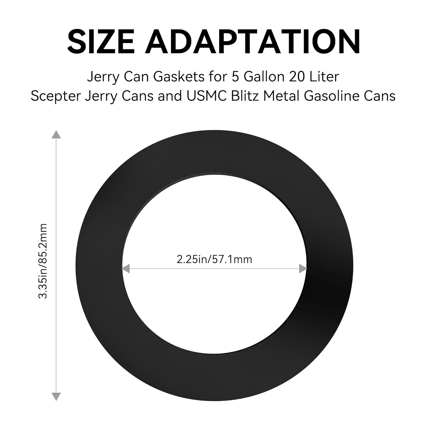 Compatibilidade Ampla: Esta gaxeta para tambor de óleo é adequada para as tampas dos tanques de 5 galões (20 litros) das latas Jerry Scepter e das latas de gasolina metálicas USMC Blitz. Além disso, é compatível com o bico flexível de rosca para latas Jerry, garantindo uma boa adaptação a uma variedade de tambores de óleo e bicos.