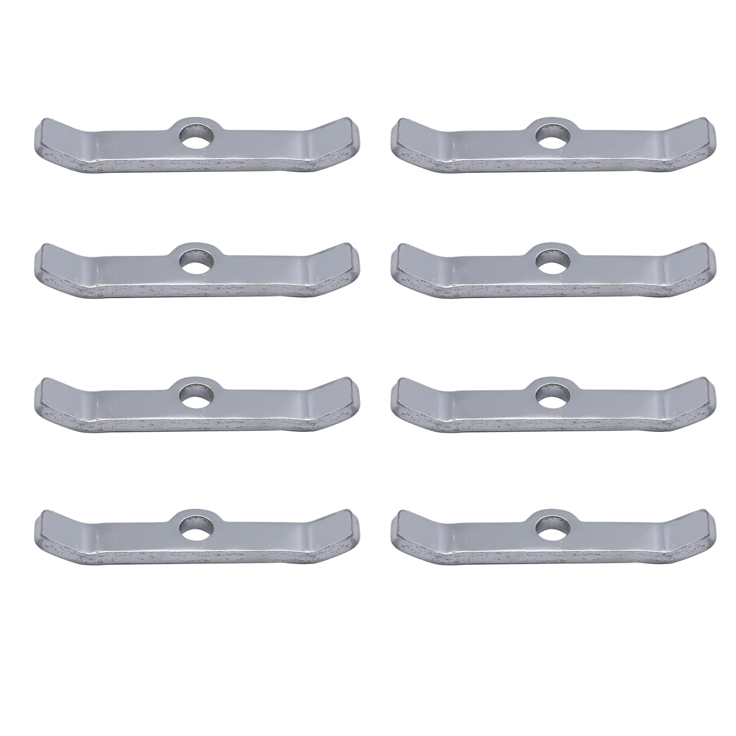 Descrição do Produto: 8 Pcs Chrome 3″ Valve Cover Spreader Bars Hold Down Tabs para Chevy SBC 283 305 327 350