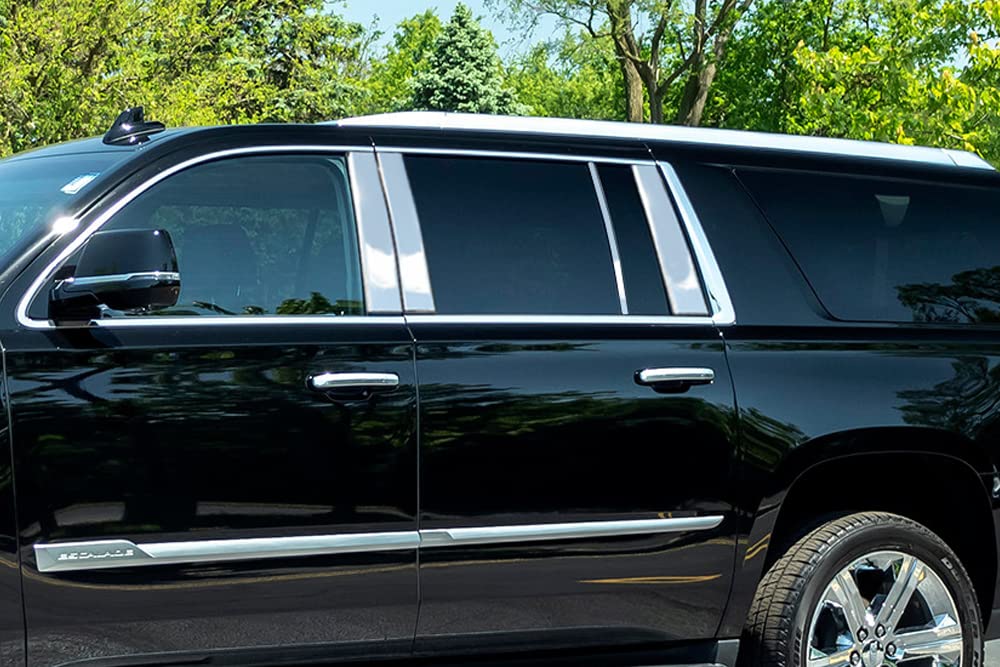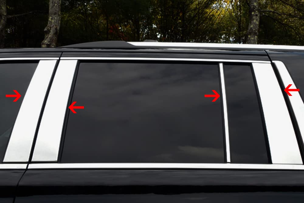 Transforme a aparência do seu Cadillac Escalade (ESV ONLY) de 2015 a 2020 com o nosso exclusivo conjunto de 8 peças de acabamento em aço inoxidável para os pilares. Este produto foi projetado especificamente para se encaixar perfeitamente nos pilares de fábrica do seu veículo, proporcionando um toque de sofisticação e elegância que destaca a beleza do seu SUV.